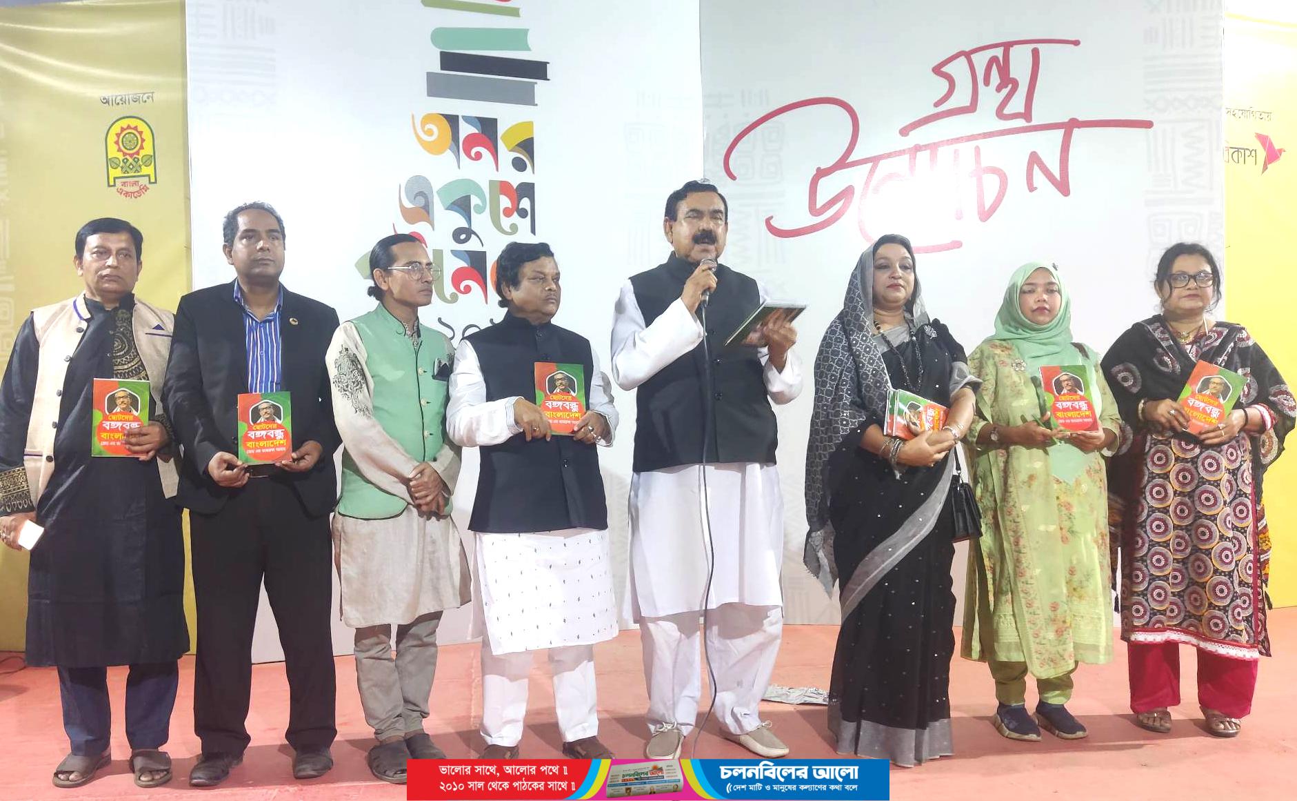 সাউন্ডবাংলা প্রকাশিত শ্রমিক নেতা কলামিস্ট জেড এম কামরুল আনামের ‘ছোটদের বঙ্গবন্ধু বাংলাদেশ’-এর মোড়ক উন্মোচন করেছেন সাবেক মন্ত্রী শাজাহান খান এমপি। বিকেল সাড়ে ৫ টায় বাংলা একাডেমির গ্রন্থ উন্মোচন মঞ্চে মোমিন মেহেদীর সঞ্চালনায় অনুষ্ঠিত ‘ছোটদের বঙ্গবন্ধু বাংলাদেশ’ গ্রন্থের মোড়ক উন্মোচন আয়োজনে বাংলাদেশ আওয়ামী লীগের প্রেসিডিয়াম মেম্বার শাজাহান খান এমপি বলেন, নতুন প্রজন্মের প্রতিনিধিদের জন্য এই বইটি খুবই গুরুত্বপূর্ণ। বইটি নতুন প্রজন্মের জন্য হলেও সবার জন্য জরুরী বইটি নিঃসন্দেহে সংগ্রহে রাখার মত। জাতির পিতার আর্দশ-সততা-জীবনসহ সকল বিষয় এই বইয়ে সমন্বয় করেছেন লেখক-কলামিস্ট জেড এম কামরুল আনাম।