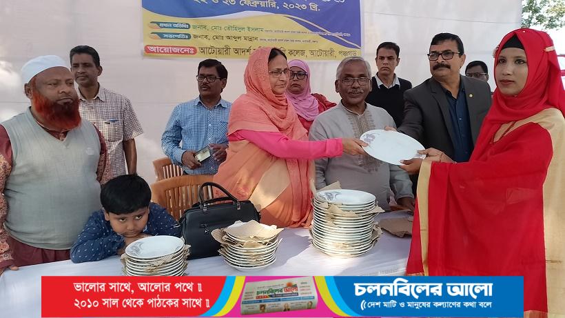 পঞ্চগড়ের আটোয়ারী আদর্শ মহিলা ডিগ্রী কলেজের আয়োজনে ছাত্রীদের নিয়ে দুই দিনব্যাপি বার্ষিক ক্রীড়া, সাংস্কৃতিক প্রতিযোগিতা , পুরস্কার বিতরণ ও বনভোজন অনুষ্ঠিত হয়েছে। বুধবার (২২ ফেব্রæয়ারি) সকালে কলেজ ক্যাম্পাসে জাতীয় সঙ্গীত পরিবেশনের সাথে জাতীয় পতাকা ও ক্রীড়া পতাকা উত্তোলন, শান্তির প্রতিক জোড়া কবুতর অবমুক্ত করণ ও মশাল প্রজ্জলনের মাধ্যমে অনুষ্ঠানের শুভ উদ্বোধন করেন অনুষ্ঠানের প্রধান অতিথি, কলেজ গভর্ণিং বোডির সভাপতি ও উপজেলা পরিষদ চেয়ারম্যান মোঃ তৌহিদুল ইসলাম। এ সময় সাথে ছিলেন অনুষ্ঠানের সভাপতি ও অধ্যক্ষ এম.এ মান্নান । দিনব্যাপি বিভিন্ন ইভেন্টে ক্রীড়া প্রতিযোগিতা ও সাংস্কৃতিক প্রতিযোগিতা অনুষ্ঠিত হয়। দ্বিতীয় দিন বৃহস্পতিবার (২৩ ফেব্রুয়ারি) অবশিষ্ট খেলা সমুহ শেষ করে সকল ইভেন্টে প্রতিযোগিতায় বিজয়ীদের মাঝে আনুষ্ঠানিকভাবে পুরস্কার বিতরণ শেষে বনভোজনের মাধ্যমে দুই দিনব্যাপি কর্মসূচি সমাপ্ত হয়। সমাপনী দিনে অধ্যক্ষ এম.এ মান্নানের সভাপতিত্বে শিক্ষার্থীদের উদ্দেশ্যে প্রধান অতিথির বক্তব্য দেন উপজেলা পরিষদ চেয়ারম্যান মোঃ তৌহিদুল ইসলাম। অনুষ্ঠান সঞ্চালনা করেন প্রভাষক আশরাফুল ইসলাম। এসময় উপস্থিত ছিলেন, উপজেলা চেয়ারম্যানের সহ ধর্মীনি মোছাঃ আনোয়ারা বেগম, উপজেলার বিশিষ্ট ব্যবসায়ী ও কলেজের বিদ্যোৎসাহী আলহাজ¦ মোঃ তাছাফুর রহমান বাচ্চু, উপজেলা প্রেস ক্লাবের সভাপতি মোঃ ইউসুফ আলী সহ কলেজের গভর্ণিং বোডির সদস্য, শিক্ষক-কর্মচারী ও ছাত্রীবৃন্দ।