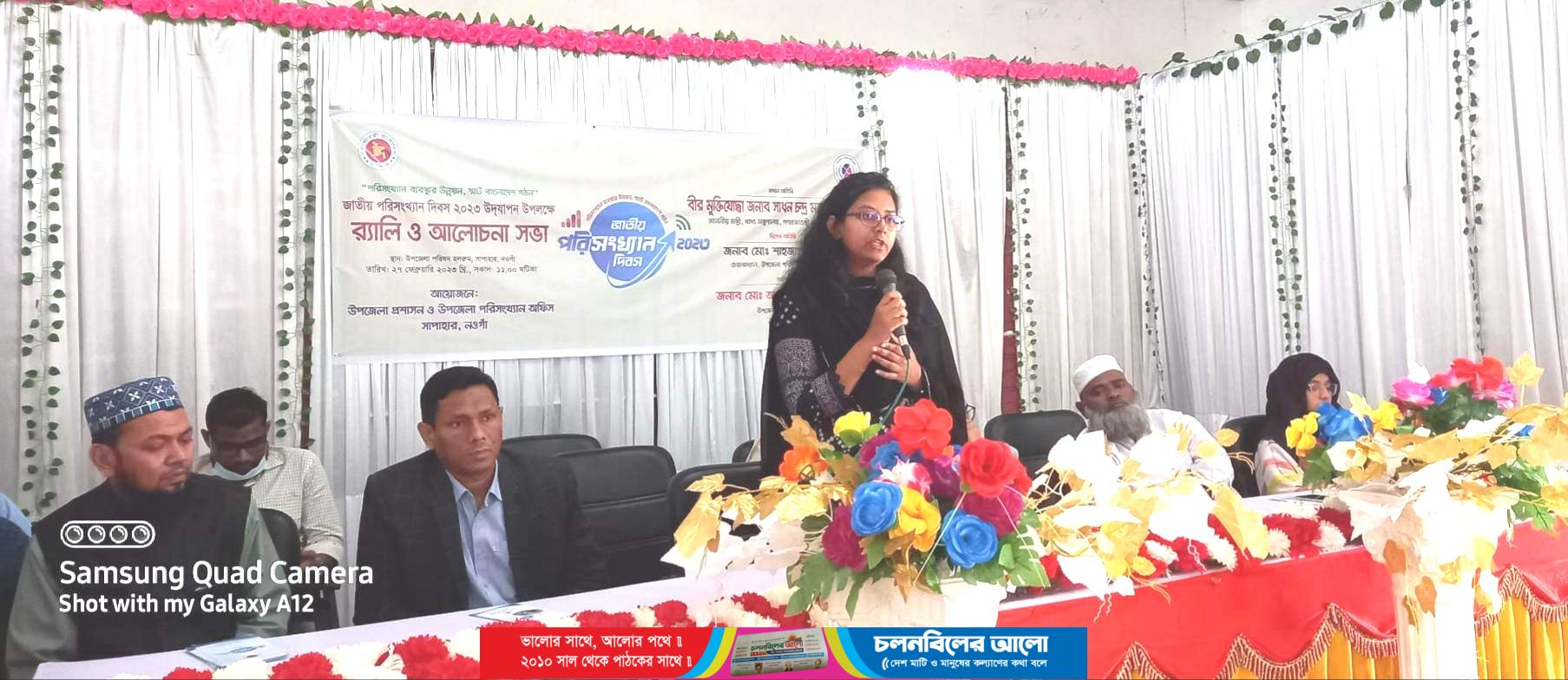 “ পরিসংখ্যান ব্যবস্থার উন্নয়ন স্মার্ট বাংলাদেশ গঠন” প্রতিপাদ্যকে সামনে রেখে নওগাঁর সাপাহারে পরিসংখ্যান দিবস উদযাপন উপলক্ষে র্যালি ও আলোচনা সভা অনুষ্ঠিত হয়েছে।