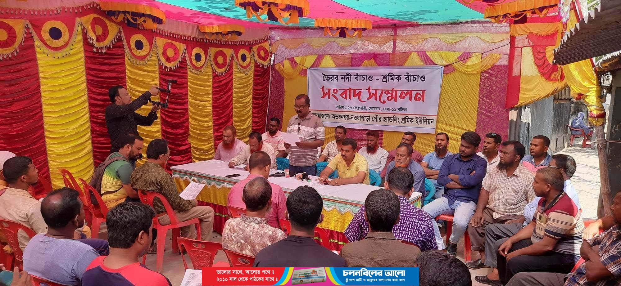 ভৈরব নদী বাঁচলে শ্রমিক বাঁচবে ভৈরব নদী ও শ্রমিক বাঁচাতে যশোরের অভয়নগর-নওয়াপাড়া পৌর হ্যান্ডিলং শ্রমিক ইউনিয়ন সংবাদ সম্মেলন করেছে। সোমবার (২৭ ফেব্রুয়ারি) সকালে নওয়াপাড়া রেলস্টেশন সংলগ্ন অভয়নগর-নওয়াপাড়া পৌর হ্যান্ডিলং শ্রমিক ইউনিয়নের কার্যালয়ে এ সংবাদ সম্মেলন অনুষ্ঠিত হয়।
