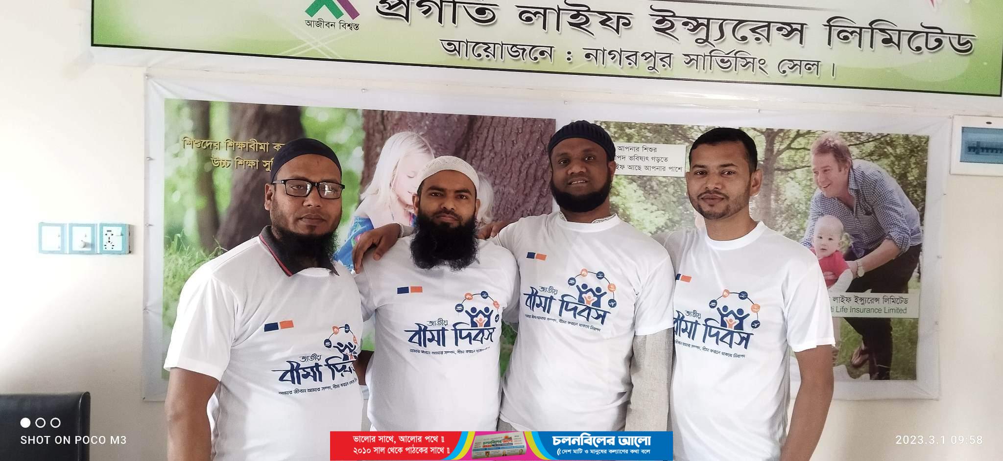 এ উপলক্ষে বুধবার (০১ মার্চ) সকালে নাগরপুর বাজারের প্রধান প্রধান সড়কে প্রগতি লাইফ ইন্স্যুরেন্স লিমিটেড নাগরপুর সার্ভিসিং সেন্টারের উদ্যোগে এক বর্ণাঢ্য র্যালী বের করা হয়।র্যালী শেষে প্রগতি লাইফ ইন্স্যুরেন্স লিমিটেড নাগরপুর সার্ভিসিং সেন্টার এর নিজস্ব অফিসে এজিএম ও শাখা ইনচার্জ মো.আব্দুল আলীমের সভাপতিত্বে এক আলোচনা সভা অনুষ্ঠিত হয়।এতে প্রধান অতিথি হিসেবে বক্তব্য রাখেন ডিজিএম মো.শহীদ মিয়া।