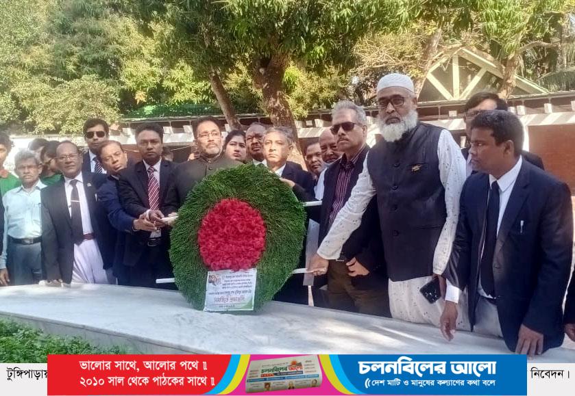 শনিবার সরকারী কৌসুলী (জিপি) প্রেমানন্দ হালদার, পাবলিক প্রসিকিউটর (পিপি) সরদার ফারুক আহমেদ, জেলা আইনজীবি সমিতির সাধারণ সম্পাদক ও অতিরিক্ত পাবলিক প্রসিকিউটর মো. আউয়াল মিয়া, নারী ও শিশু ও শিশু নির্যাতন দমন ট্রাইব্যুনালের সহকারী পাবলিক প্রসিকিউটর দিলীপ কুমার মাঝি জাতির পিতা বঙ্গবন্ধু শেখ মুজিবুর রহমানের সমাধি সৌধে ফুল দিয়ে শ্রদ্ধা নিবেদন করেন।