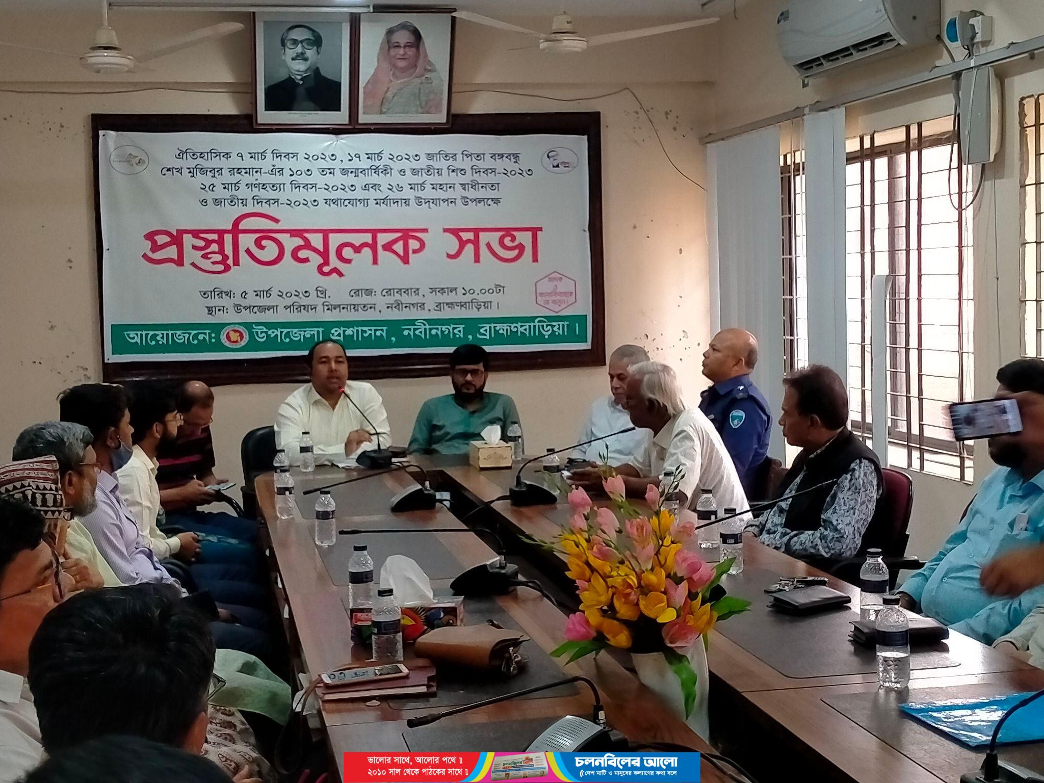 ব্রাহ্মণবাড়িয়ার নবীনগর উপজেলা প্রশাসনের উদ্যোগে ৭ই মার্চ, ১৭ই মার্চ, ২৫শে মার্চ ও ২৬শে মার্চে সুষ্ঠু ভাবে উদযাপনের লক্ষ্যে প্রস্তুতিমূলক সভা অনুষ্ঠিত হয়েছে।