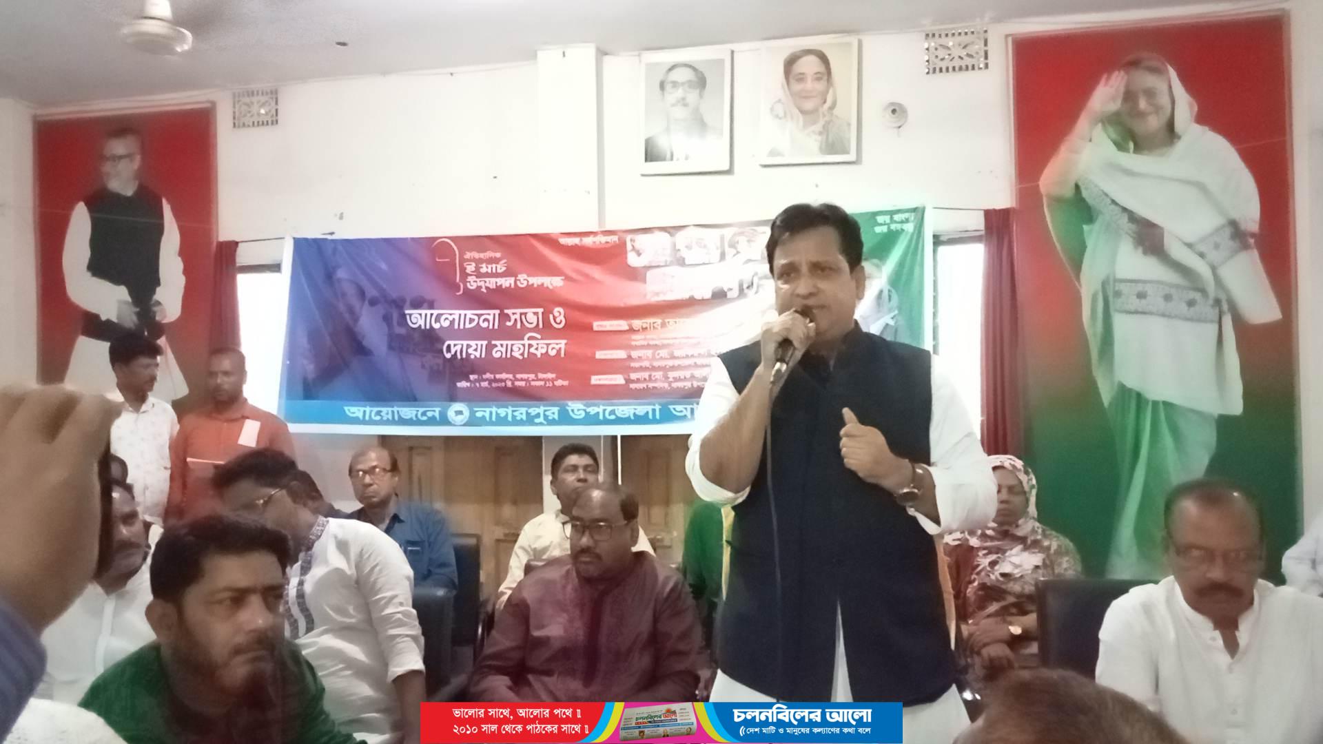 নাগরপুরে আ.লীগের উদ্যোগে ঐতিহাসিক ৭ই মার্চের আলোচনা ও দোয়া মাহফিল অনুষ্ঠিত