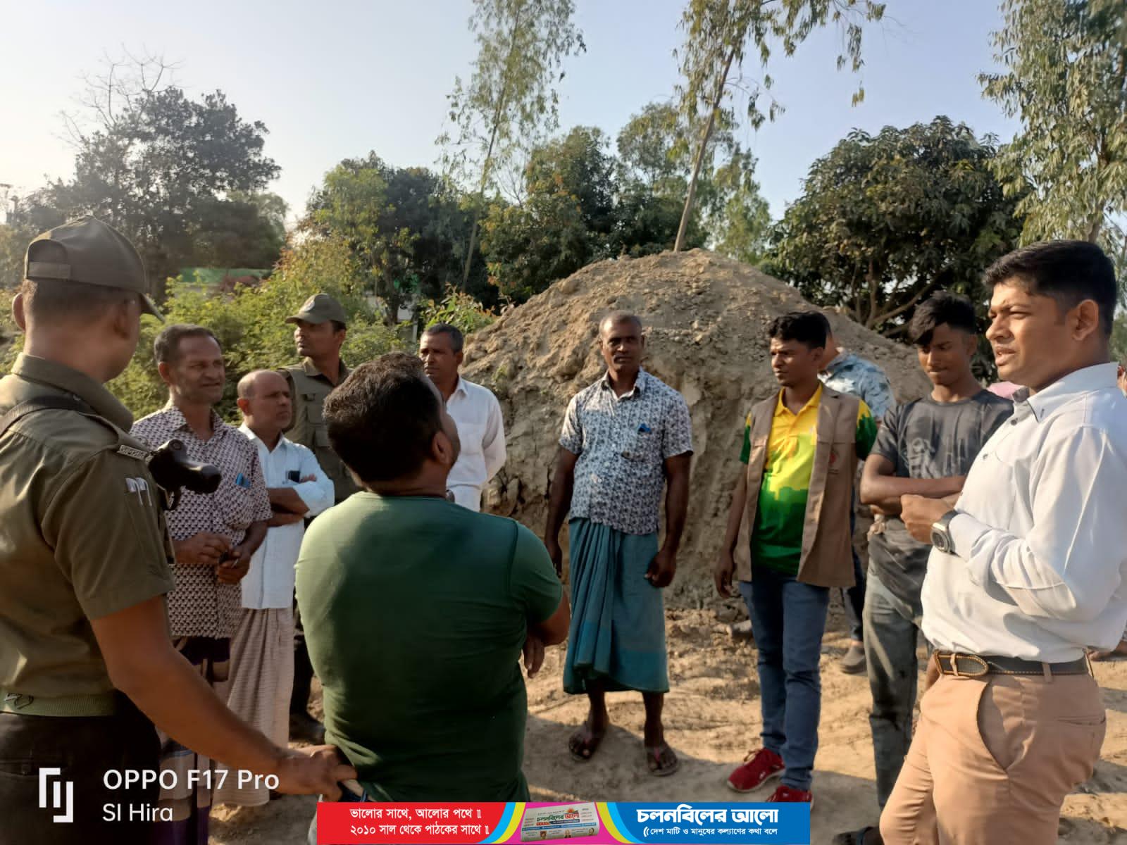 উপজেলা নির্বাহী কর্মকর্তা মোঃ উজ্জল হোসেন গণমাধ্যম কর্মীদেরকে জানান, উপজেলার কৈমাঝুরিয়া গ্রামের হিটলার ও মঈনুল হোসেন ভেংড়ি গ্রামের মাঠে অবৈধভাবে ফসলী জমি কেটে পুকুর খনন করে মাটি বিক্রি করছিলেন বলে প্রশাসনের কাছে অভিযোগ আসে।