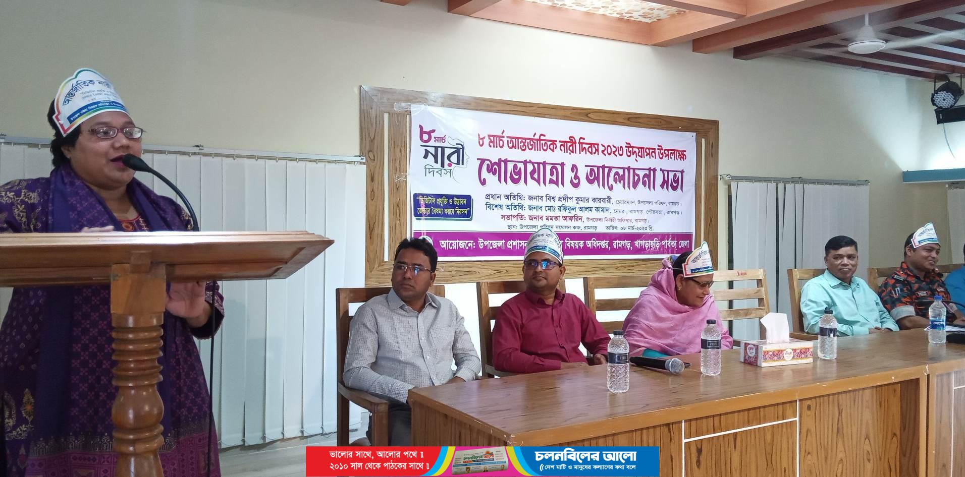 বুধবার (৮ মার্চ) সকাল ১১টায় উপজেলা প্রশাসন ও উপজেলা মহিলা অধিদপ্তরের যৌথ আয়োজনে পরিষদ মিলনায়তনে দিবসটি উপলক্ষে র্যালী ও আলোচনা সভা অনুষ্ঠিত হয় ।