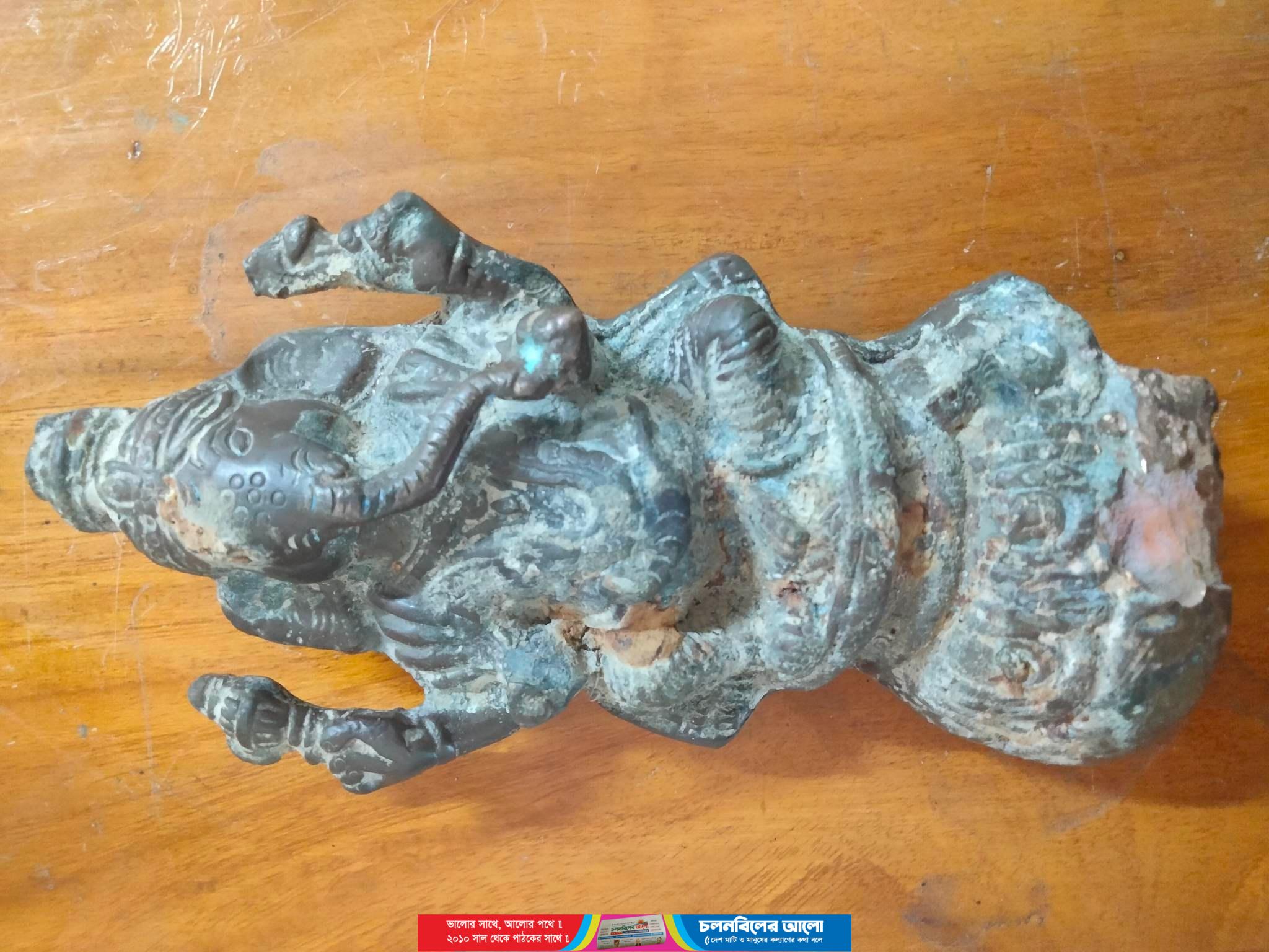 তিনি জানান, বুধবার উপজেলার শগুনখোলা গ্রামের আবু তালেব তার জমিতে গভীর নলকূপের মাধ্যমে পানি দেয়ার জন্য ড্রেন খনন করছিলেন। এসময় তিনি মাটির নিচে একটি পিতলের মূর্তি দেখতে পান। পরে তিনি মূর্তিটি বাড়িতে নিয়ে আসেন।তিনি জানান, এই খবর পেয়ে এদিন রাত ১২টার দিকে পুলিশ আবু তালেবের বাড়িতে গিয়ে তাকে জিজ্ঞাসাবাদ করেন। জিজ্ঞাসাবাদে আবু তালেব মূর্তিটি তার হেফাজতে রাখার কথা স্বীকার করেন। এরপর পুলিশ মূর্তিটি থানায় নিয়ে আসে।ওসি আরও জানান, এটি হিন্দুদের গণেশ দেবের মূর্তি। সাত ইঞ্চি আকারের পিতলের মূর্তিটি কালো রঙের। সামনের অংশ ভালো থাকলেও পেছনের অংশ ভাঙা রয়েছে।