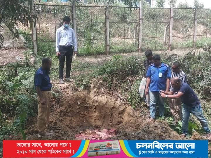জব্দকৃত মাংস সমূহ গর্ত করে মাটিতে পুতে ফেলা হয়েছে। মাটিতে পুতে ফেলার সময় স্যানেটারি ইন্সেপেক্টর শাহ জালাল উপজেলা স্বাস্থ্য কমপ্লেক্স লামা, গ্রাম পুলিশ, মিজানুর রহমান,ও গ্রাম পুলিশ মোঃ জাকারিয়ার উপস্থিতিতে পুতে ফেলা হয়েছে।