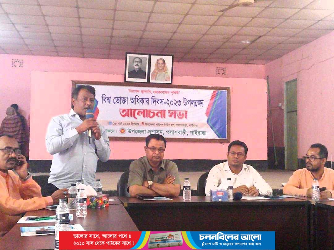 “নিরাপদ জ্বালানি, ভোক্তা বান্ধব পৃথিবী”এই প্রতিপাদ্যকে সামনে রেখে সারাদেশের ন্যায় গাইবান্ধা জেলার পলাশবাড়ীতে উপজেলা প্রশাসনের আয়োজনে বিশ্ব ভোক্তা অধিকার দিবস উপলক্ষে এক আলোচনা সভা অনুষ্ঠিত হয়েছে।
