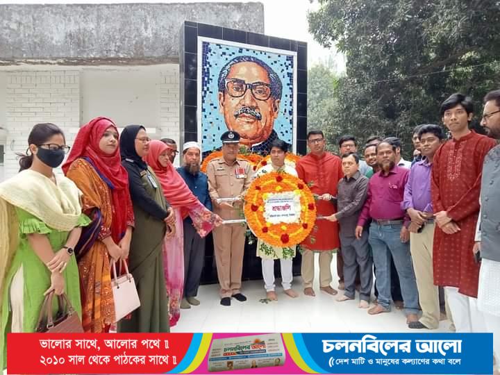 শুক্রবার (১৭ মার্চ) সকালে উপজেলা পরিষদ চত্বরে বঙ্গবন্ধু শেখ মুজিবুর রহমানের জন্মবাষির্কী উপলক্ষ্যে প্রতিকৃতিতে পুস্পাস্তবক অর্পণ শেষে বর্ণাঢ্য র্যালী, কেক কাটা, প্রামান্যচিত্র প্রদর্শন ও আলোচনা সভা অনুষ্ঠিত হয়। উপজেলা নির্বাহী অফিসার ওয়াহিদুজ্জামান এর সভাপতিত্বে ও জিএম ফুহাদ হোসেনের পরিচালনায়, উপস্থিত ছিলেন উপজেলা সহকারি কমিশনার (ভুমি) মো. ইকবাল হোসেন, শিক্ষা নবীস সহকারী পুলিশ সুপার সীমা খানম, উপজেলা পরিষদের ভাইস চেয়ারম্যান হুমায়ুন কবির, মহিলা ভাইস চেয়ারম্যান ছামিনা বেগম শিপ্রা, উপজেলা প্রকৌশলী মাহবুবুর রহমান, থানা অফিসার ইনচার্জ সাজ্জাদ হোসেন, কৃষি কর্মকর্তা আব্দুল মতিন বিশ্বাস , মাধ্যমিক শিক্ষা অফিসার মো. শাহীনুর ইসলাম, প্রাথমিক শিক্ষা কর্মকর্তা আঞ্জুমান আরা বেগম বীথিসহ বীর মুক্তিযোদ্ধা, স্কুল কলেজের ছাত্র-ছাত্রীরা।