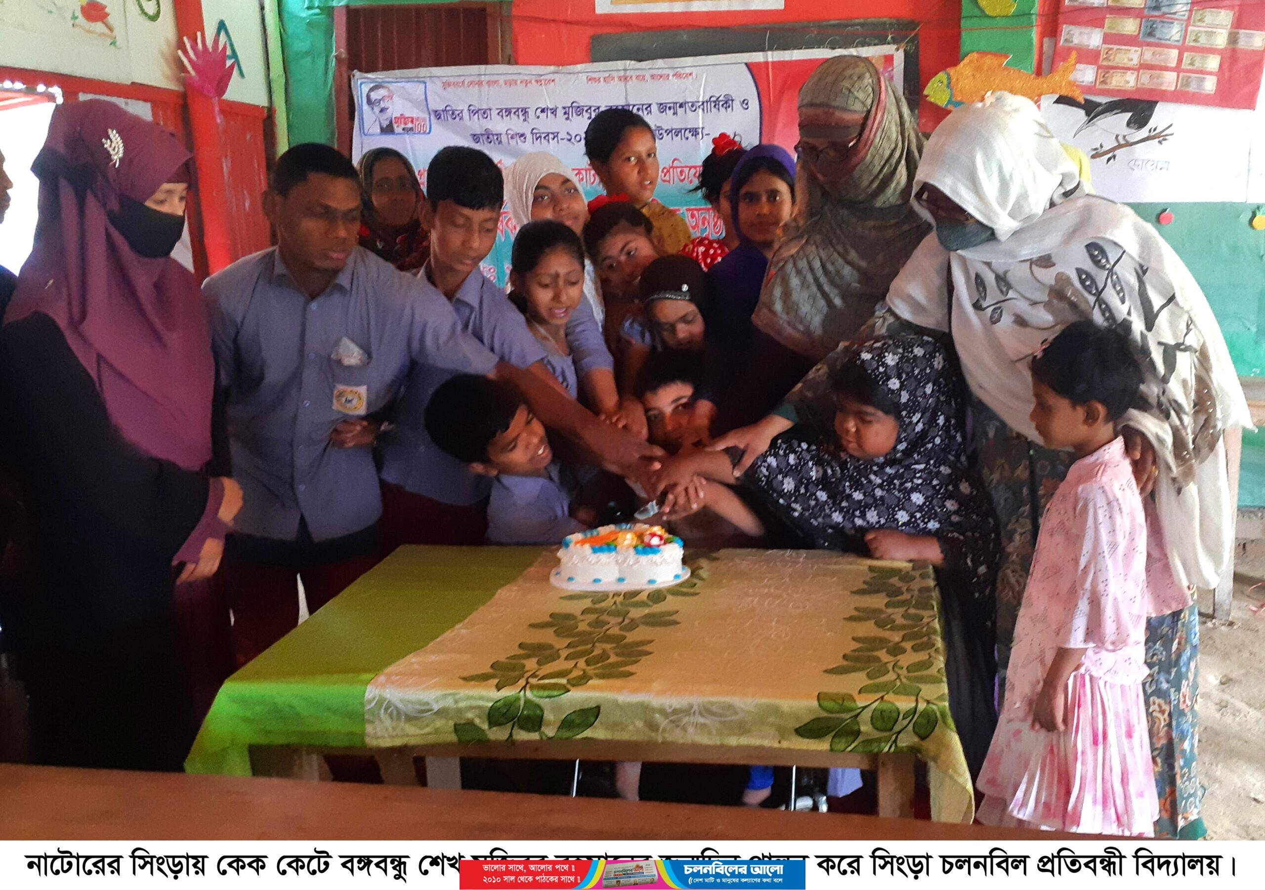 নাটোরের সিংড়ায় বঙ্গবন্ধু শেখ মুজিবুর রহমানের জন্মদিন ও জাতীয় শিশু দিবস পালিত হয়েছে। শুক্রবার (১৭ মার্চ) সকালে সিংড়া চলনবিল প্রতিবন্ধী বিদ্যালয়ে কেক কেটে বঙ্গবন্ধু শেখ মুজিবুর রহমানের ১০৩তম জন্মদিন ও জাতীয় শিশু দিবস পালন করেছে শিক্ষক-শিক্ষার্থীরা।