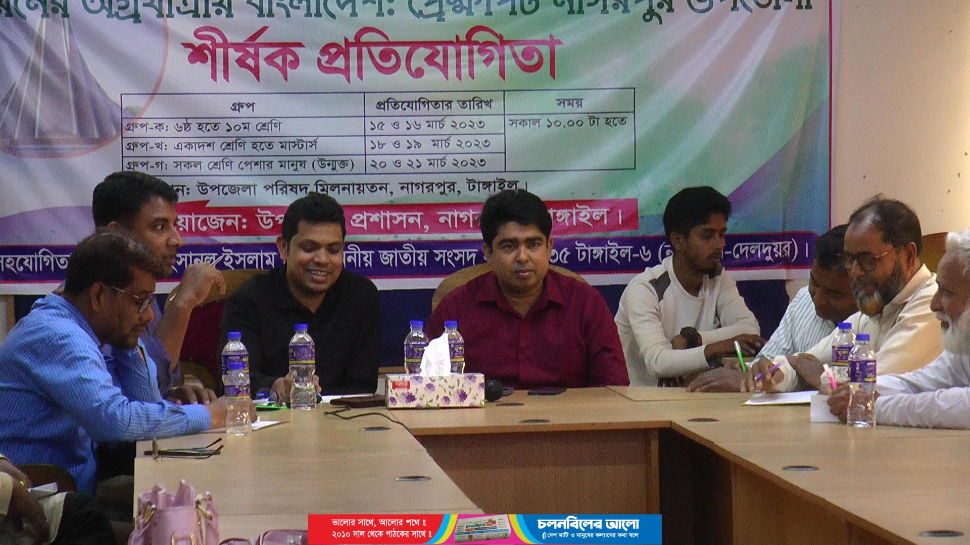 ১৫ মার্চ বুধবার হইতে ২১ মার্চ মঙ্গলবার  পযর্ন্ত এ শীর্ষক প্রতিযোগিতা উপজেলা পরিষদ মিলনায়তনে উপজেলা প্রশাসনের আয়োজনে ও টাঙ্গাইল-৬ সংসদ সদস্য আহসানুল ইসলাম টিটুর সার্বিক সহযোগিতায় ৩টি ক্যাটাগরীতে বিজয়ীদের মধ্যে পুরস্কার হিসেবে দেয়া হবে ল্যাপটপ, স্মার্টফোনসহ আকষনীয় পুরস্কার। উপজেলা নির্বাহী অফিসার ওয়াহিদুজ্জামানের সভাপতিত্বে উপস্থিত ছিলেন, সহকারী কমিশনার (ভুমি) ইকবাল হোসেন, উপজেলা প্রোগ্রামার হাবিবুর রহমান, নাগরপুর মহিলা কলেজের অধ্যাপক আনিসুর রহমান, সরকারি যুদনাথ পাইলট মডেল এন্ড কলেজের সাবেক প্রধান শিক্ষক নুর হোসেন মিয়াসহ শীর্ষক প্রতিযোগিতায় বিভিন্ন স্কুল কলেজের শিক্ষার্থীরা অংশগ্রহন করে।