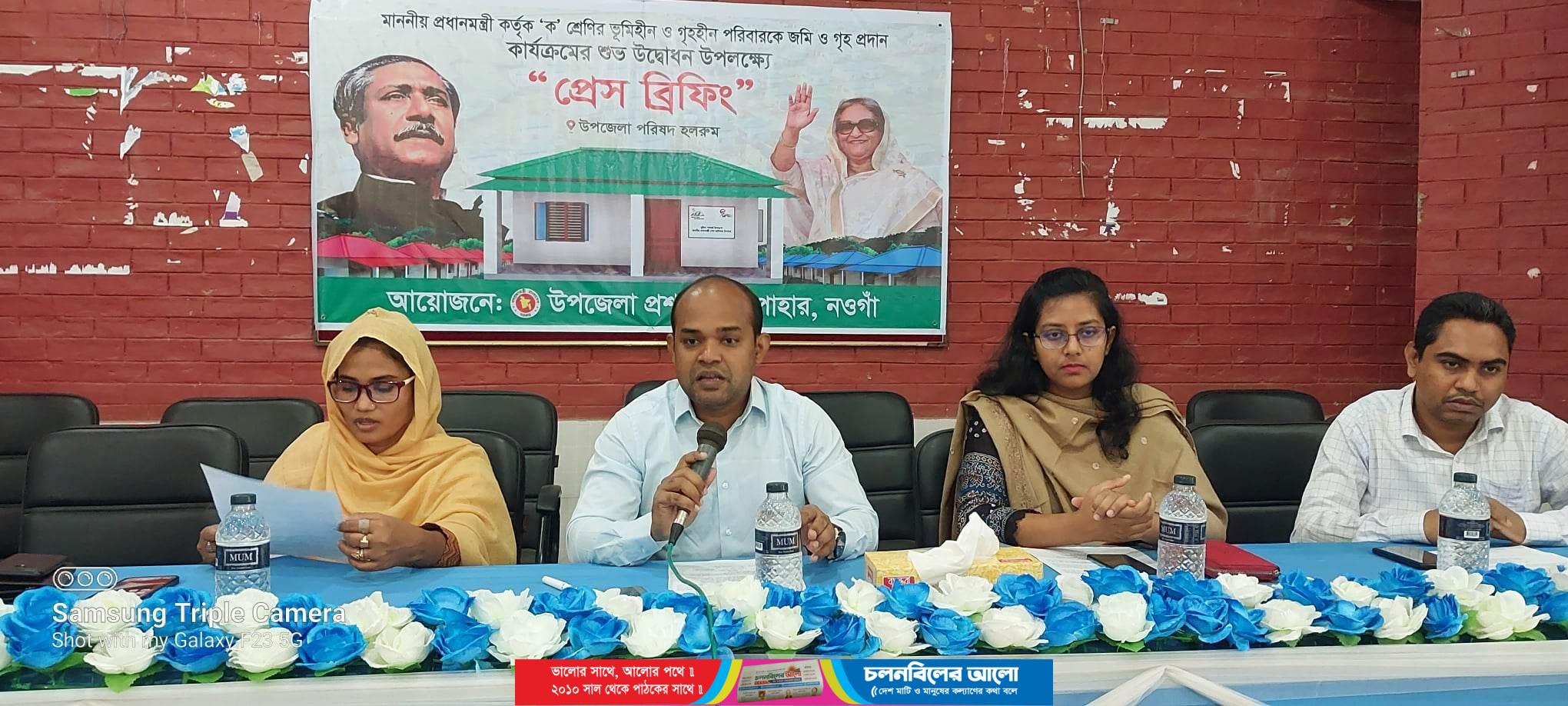 প্রেস ব্রিফিংয়ে উপজেলা নির্বাহী অফিসার আব্দুল্যাহ আল মামুন লিখিতভাবে জানিয়েছে, মুজিববর্ষে বাংলাদেশের একজন মানুষও ভূমিহীন থাকবেনা মাননীয় প্রধানমন্ত্রীর এ নির্দেশনা বাস্তবায়নের দেশের সকল ভূমিহীন ও গৃহহীন পরিবারকে জমি ও গৃহ প্রদান কার্যক্রম চলমান মাননীয় প্রধানমন্ত্রীর কার্যালয়ের আশ্রয়ণ ২ প্রকল্পের উদ্যোগ ও তত্ত্বাবধানে সারাদেশে জমি ও ঘর নেই (ক শ্রেণীর ভূমিহীন পরিবার ) এমন পরিবারকে ২ শতক জমি ও গৃহ প্রদানপূর্বক এই পুনর্বাসন কার্যক্রম বাস্তবায়ন করা হচ্ছে। উপকারভোগী নির্বাচন, নির্বাচিত উপকারভোগীদের মাঝে খাস জমি বন্দোবস্ত এবং ঘরের গুণগত মান নিশ্চিত করে ইতিমধ্যে সারা দেশে প্রথম, দ্বিতীয় ও তৃতীয় পর্যায়ের গৃহ প্রদান কার্যক্রম সফলভাবে সম্পন্ন হয়েছে। এরই ধারাবাহিকতায় আগামী ২২ মার্চ সারাদেশে ৪৯,৪২৭ টি বাড়ি উদ্বোধন করবেন গণপ্রজাতন্ত্রী বাংলাদেশ সরকারের মাননীয় প্রধানমন্ত্রী শেখ হাসিনা।
