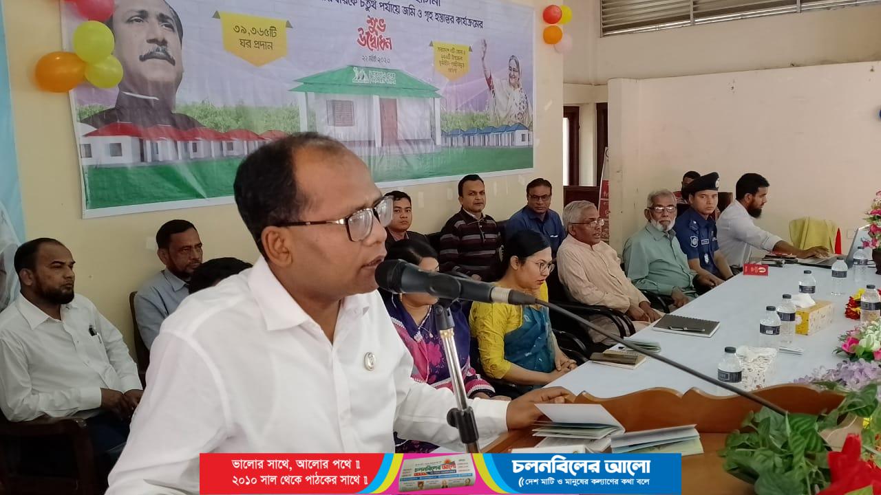 প্রধানমন্ত্রী শেখ হাসিনা বুধবার (২২ মার্চ) সকালে গণভবন থেকে ভার্চুয়ালি যুক্ত হয়ে চতুর্থ পর্যায়ে ভূমিহীন ও গৃহহীন পরিবারকে জমি ও গৃহ প্রদান কার্যক্রমের শুভ উদ্বোধন করেন এবং দেশের ৭ জেলা ও ১৫৯ টি উপজেলাকে ভুমিহীন ও গৃহহীনমুক্ত ঘোষণা করেছেন। এসময় আটোয়ারী উপজেলা প্রশাসনের আয়োজনে এক আলোচনা সভা অনুষ্ঠিত হয়েছে। এতে পঞ্চগড়ের জেলা প্রশাসক মোঃ জহুরুল ইসলাম প্রধান অতিথি হিসেবে উপস্থিত থেকে তার বক্তব্যে উপরোক্ত কথা বলেন। ভারপ্রাপ্ত উপজেলা নির্বাহী অফিসার ও উপজেলা সহকারী কমিশনার (ভূমি) শায়লা সাঈদ তন্বী’র সভাপতিত্বে অনুষ্ঠিত সভায় অন্যান্যদের মধ্যে উপজেলা পরিষদ চেয়ারম্যান মোঃ তৌহিদুল ইসলাম, ভাইস চেয়ারম্যান রেনু একরাম, আটোয়ারী থানার অফিসার ইনচার্জ মোঃ সোহেল রানা, সাবেক উপজেলা মুক্তিযোদ্ধা কমান্ডার নজরুল ইসলাম, বিভিন্ন সরকারী দপ্তরের কর্মকর্তা, স্থানীয় নেতৃবৃন্দসহ গণমাধ্যমকর্মীরা উপস্থিত ছিলেন। জেলা প্রশাসক বলেন, পুনর্বাসিত পরিবারগুলোকে প্রশিক্ষণের মাধ্যমে আয়বর্ধক প্রকল্পের আওতায় নেয়া হচ্ছে। এসব পরিবারের জীবনমান ও কর্মদক্ষতা উন্নয়নে প্রথম, দ্বিতীয় ও তৃতীয় ধাপে মোট ৪০১ জন নারী -পুরুষকে বিভিন্ন ট্রেডে প্রশিক্ষণ দিয়ে সেলাই মেশিন, অটোভ্যান, গবাদিপশু প্রদানসহ কাবিখা, কাবিটা প্রকল্পে সম্পৃক্ত করে তাদের জীবনমান উন্নয়নে উপজেলা প্রশাসন কাজ করছে। এছাড়াও প্রতিটি পরিবারের জন্য সুপেয় পানির ব্যবস্থা, বিনামূল্যে বিদ্যুৎ সুবিধা, কবুলিয়ত ও জমির নামজারী সম্পন্ন করা হয়েছে। তিনি আরো বলেন, উপজেলা প্রশাসনের সার্বিক তত্ত্বাবধানে উপজেলায় ভুমিহীন ও গৃহহীন পরিবারকে জমি ও গৃহ প্রদানের মাধ্যমে পুনর্বাসনের লক্ষ্যে বাস্তবায়িত প্রকল্প সংশ্লিষ্ট সকল কার্যক্রম সর্বসাধারণের মাঝে তুলে ধরে প্রধানমন্ত্রীর এ মানবিক উদ্যোগকে সফল ও স্বার্থক করতে হবে।