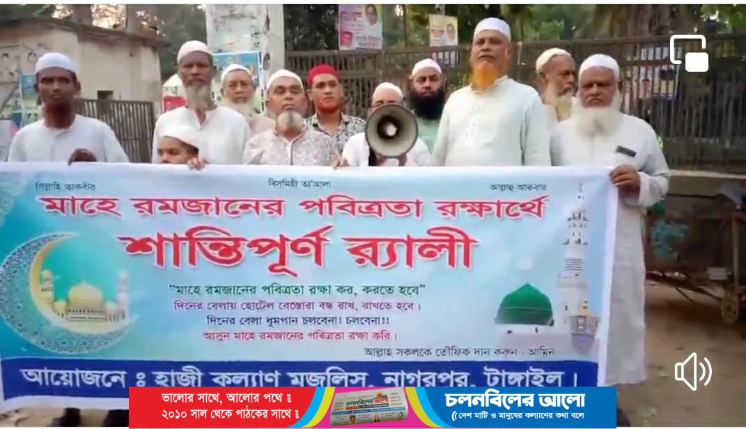 টাংগাইলের নাগরপুরে হাজী কল্যাণ মজলিসের উদ্যোগে মাহে রমজানের পবিত্রতা রক্ষার্থে শান্তিপূর্ণ র‍্যালি অনুষ্ঠিত হয়।