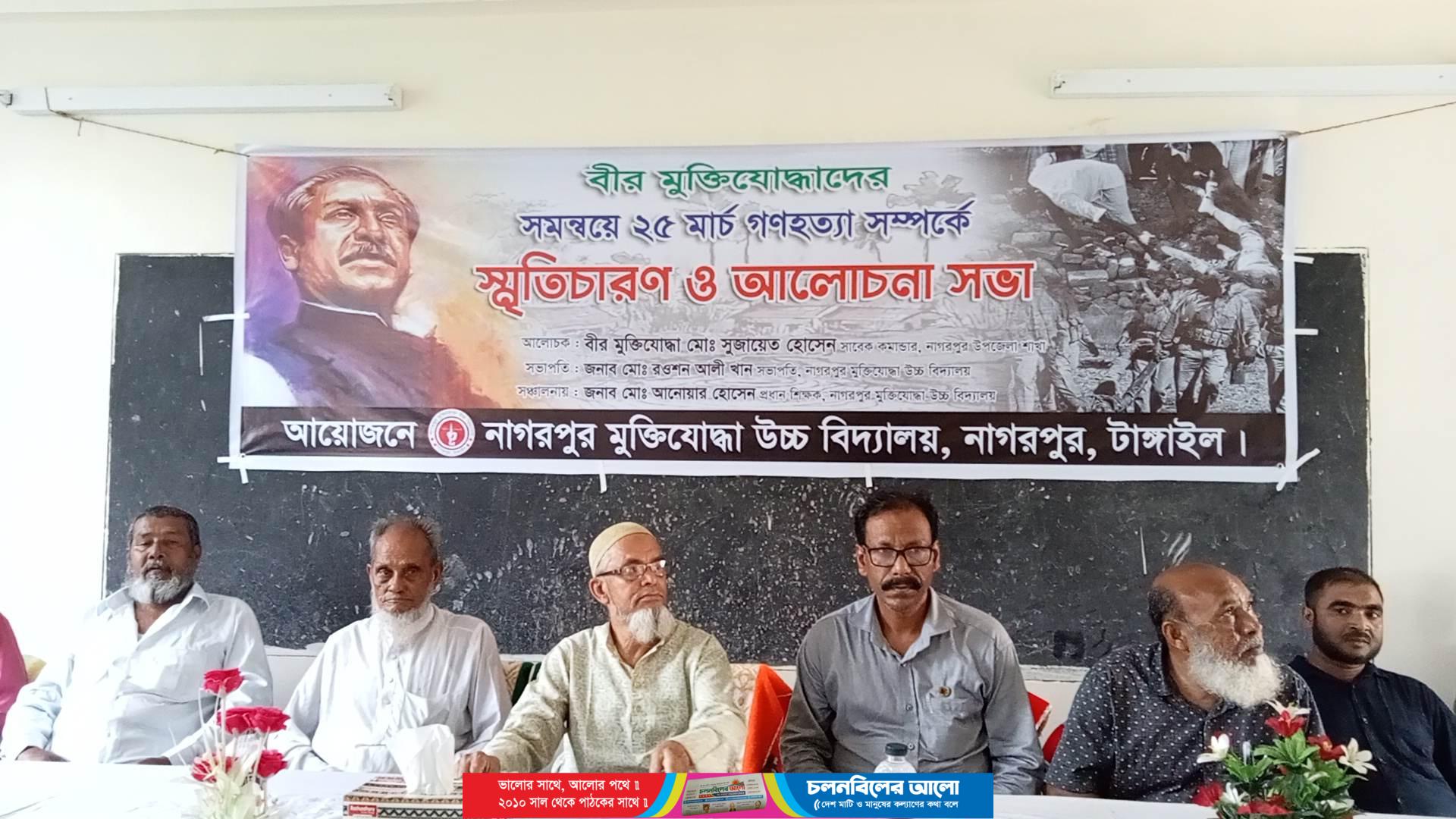 টাঙ্গাইলের নাগরপুরে বীর মুক্তিযোদ্ধাদের সমন্বয়ে ২৫ মার্চ গণহত্যা সম্পর্কে স্মৃতিচারণ ও আলোচনা সভা অনুষ্ঠিত হয়।