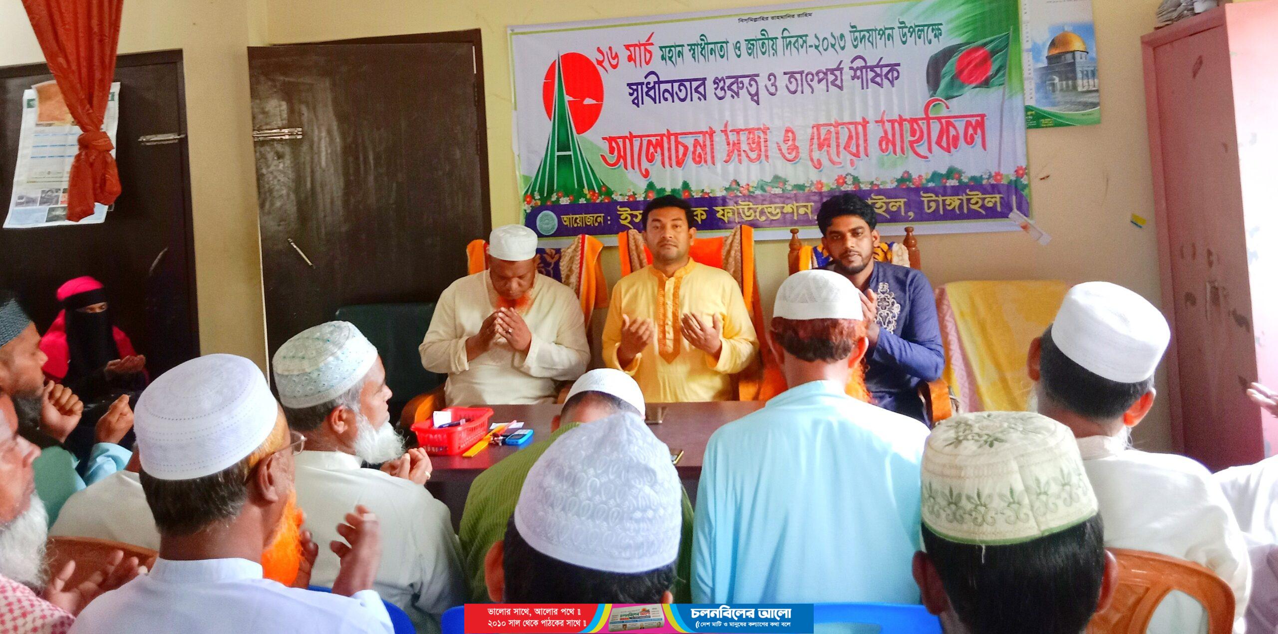 মহান স্বাধীনতা ও জাতীয় দিবস উপলক্ষে বাসাইল উপজেলা ইসলামিক ফাউন্ডেশনের উদ্যোগে গত রবিবার সকাল ৯টায় বাসাইল উপজেলা ইসলামিক ফাউণ্ডেশনের হল রুমে কুরআন খানি, মিলাদ ও দোয়া মাহফিল অনুষ্ঠিত হয়।