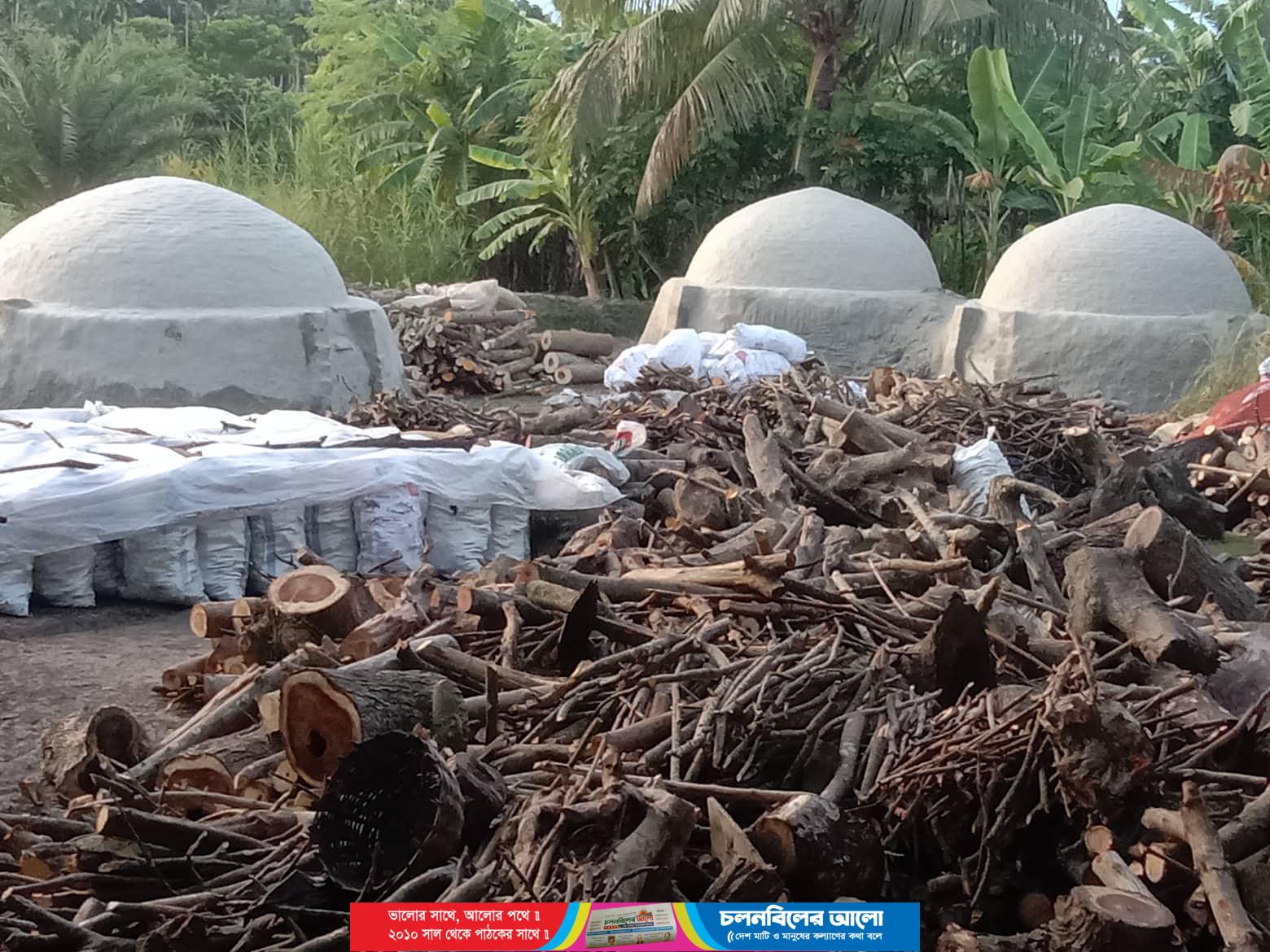 সরেজমিনে গিয়ে দেখা যায়, মাটি, ইট ও  কাঠের গুঁড়া মিশিয়ে তৈরি করা হয়েছে বড় আকারের চুল্লি। চুল্লির মধ্যে সারিবদ্ধভাবে কাঠ সাজিয়ে চুল্লির খোলা মুখ দিয়ে আগুন দেয়া হয়। প্রায় ৭ থেকে ১০ দিন পোড়ানোর পর চুলা থেকে কয়লা বের করা হয়। ওই এলাকায় ১০০/১২০ টি অবৈধ চুল্লী তৈরি করেছে অসাধু ব্যবসায়ী সিন্ডিকেট, প্রতিটি চুল্লিতে প্রতিবার ২৫০ থেকে ৩০০ মণ কাঠ পোড়ানো হয়। পরে কয়লা গুলো বের করে ঠান্ডা করে বিক্রির উদ্দেশ্যে দেশের বিভিন্ন অঞ্চলে পাঠিয়ে দেয়া হয়। স্থানীয় বাসিন্দারা জানান, আগে অনেকবার এলাকাবাসীরা উপজেলা প্রশাসনের কাছে অভিযোগ দিয়েছেন। ব্যাবসায়ীর প্রশাসনকে ফাঁকি দিয়ে এই ব্যবসা করছেন। উপজেলা প্রশাসন ও পরিবেশ অধিদফতর থেকে চারবার অভিযান চালিয়ে চুল্লিগুলো গুঁড়িয়ে দিলেও বন্ধ হয়নি এ অবৈধ ব্যবসা। প্রতিবারই আরও নতুন নতুন চুল্লি তৈরি হয়েছে। সরকারি নিয়মনীতিকে কেয়ার না করে এসকল ব্যক্তিরা কাঠ পুড়িয়ে কয়লা তৈরি করে আসছে। এই কাট পুড়িয়ে কয়লা বানানোর কারণে আমাদের শ্বাসকষ্টসহ নানাবিধ রোগ দেখা দিয়েছে। ফলে একদিকে যেমন পরিবেশ দূষিত হচ্ছে, উজাড় হচ্ছে গাছপালা। ইউনিয়নের কয়েকটি গ্রামে অবাধে চুল্লিতে এ কয়লা তৈরি হওয়ায় নির্গত ধোঁয়ায় পরিবেশ দূষিত হচ্ছে। সংশ্লিষ্ট ইউনিয়নের সোনাতলা গ্রামের জিয়া মোল্যা, ছোট্ট মোল্যা, শহিদ মোল্যা, হারুন মোল্যা, রফিক মোল্যা, তৌকির মোল্যা, কবীর শেখ, হাবিব হাওলাদার, তসলিম মিয়া, মনির শেখ কামরুল ফারাজী এবং ধূলগ্রামের হরমুজ সর্দার, রকশেদ সর্দার, ফারুক হাওলাদার এ অঞ্চলে শতাধিক চুল্লি তৈরি করে কয়লা বানিয়ে আসছেন। কিন্তু তারা এতটাই দুর্র্ধর্ষ যে স্থানীয়রা তাদের বিরুদ্ধে প্রতিবাদ তো দূরের কথা মুখ খুলতেও সাহস করেনা। এ বিষয়ে কয়েকজন চুল্লি মালিকের সাথে কথা বললে তারা নাম প্রকাশ না করার শর্তে বলেন, ঘাটে ঘাটে টাকা দিয়ে আমাদের ব্যবসা চালাতে হয়। স্থানীয় পর্যায় থেকে শুরু করে সব মহলকে টাকা দিয়ে ম্যানেজ করেই তারপর ব্যবসা চালাই।