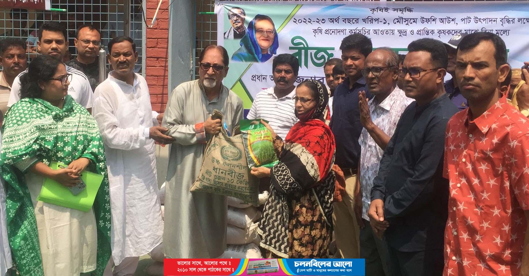 সিরাজগঞ্জের উল্লাপাড়া উপজেলা পরিষদ চত্বরে সোমবার সকাল সাড়ে ১০টায় উপজেলা নির্বাহী অফিসার উজ্জল হোসেন এর সভাপতিত্বে ৯৭০জন প্রান্তিক কৃষকদের মাঝে বিনামূল্যে সার ও বীজ বিতরণ করা হয়েছে। আয়োজনে কৃষি সম্প্রসারণ অধিদপ্তরের ২০২২-২৩ অর্থবছরে খরিপ-১, মৌসুমি উফসি আউস, পাট উৎপাদন বৃদ্ধির লক্ষ্যে কৃষি প্রণোদনা কর্মসূচির আওতায় ক্ষুদ্র ও প্রান্তিক কৃষকদের মাঝে সার ও বীজ বিতরণ করা হয়। সার ও বীজ বিতরণ অনুষ্ঠানে প্রধান অতিথি হিসেবে উপস্থিত ছিলেন সিরাজগঞ্জ-৪ (উল্লাপাড়া-সলঙ্গা) আসনের জাতীয় সংসদ সদস্য তানভীর ইমাম। এ সময় আরো উপস্থিত ছিলেন ভাইস-চেয়ারম্যান মনিরুজ্জামান পান্না, উপজেলা কৃষি কর্মকর্তা সুবর্ণা ইয়াসমিন সুমী, মহিলা ভাইস-চেয়ারম্যান রীবলী ইসলাম কবিতা, উপজেলা কৃষি কর্মকর্তা সুবর্ণা ইয়াসমিন সুমী, উপজেলা আওয়ামী লীগের সভাপতি ফয়সাল কাদের রুমি, সাধারণ সম্পাদক বীর মুক্তিযোদ্ধা গোলাম মোস্তফা, সাংগঠনিক সম্পাদক মীর আরিফুল ইসলাম উজ্জল প্রমুখ।