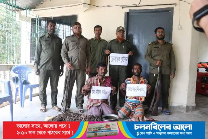 আটক দুই চোরাশিকারী হলো গাবুরা ইউনিয়নের পার্শেমারী এলাকার বেলায়েত গাজীর ছেলে মুজিবর(৫২) ও একই এলাকার কুদ্দুস শেখের ছেলে ময়নুদ্দিন(৪০)।