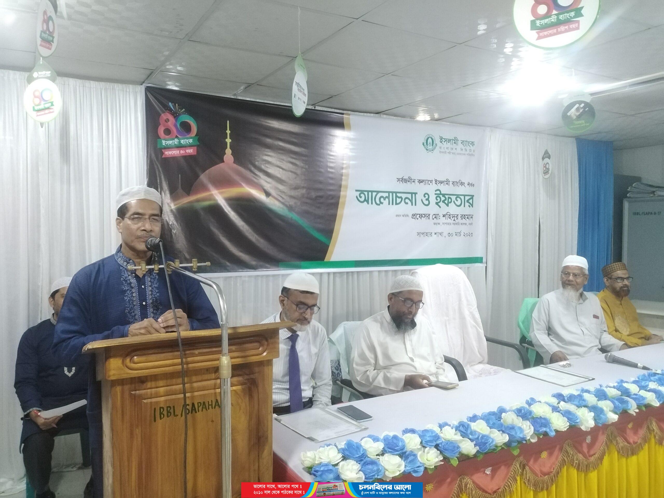 বৃহসপতিবার বিকেল সোয়া ৫ টায় ইসলামী ব্যাংক কার্যালয়ে শাখা ব্যবস্থাপক প্রিন্সিপাল অফিসার মনিরুজ্জামান খানের সভাপতিত্বে অনুষ্ঠিত আলোচনা ও ইফতার অনুষ্ঠানে প্রধান অতিথি হিসেবে উপস্থিত ছিলেন সাপাহার সরকারি কলেজের অধ্যক্ষ প্রফেসর মোঃ শহীদুর রহমান।