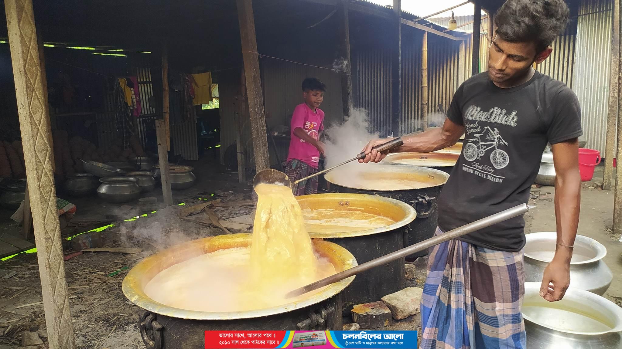 শনিবার সকালে উল্লাপাড়া উপজেলার সলপ রেলস্টেশন এলাকায় গিয়ে দেখা যায়, স্টেশনের পাশে ঘোলের দোকানগুলো জমে উঠেছে রমরমা। দোকানের সামনে মাটির পাত্রে পসরা সাজিয়ে চলছে বিক্রি। দোকানের পেছনে ঘোল তৈরীতে ব্যস্ত সময় পার করছেন কারীগররা অনেকেই দূরদূরান্তে থেকে ঘোলের জন্য এখানে এসেছেন। আবার দোকানে অনেকে বসে ঘোলের স্বাদ নিচ্ছেন।