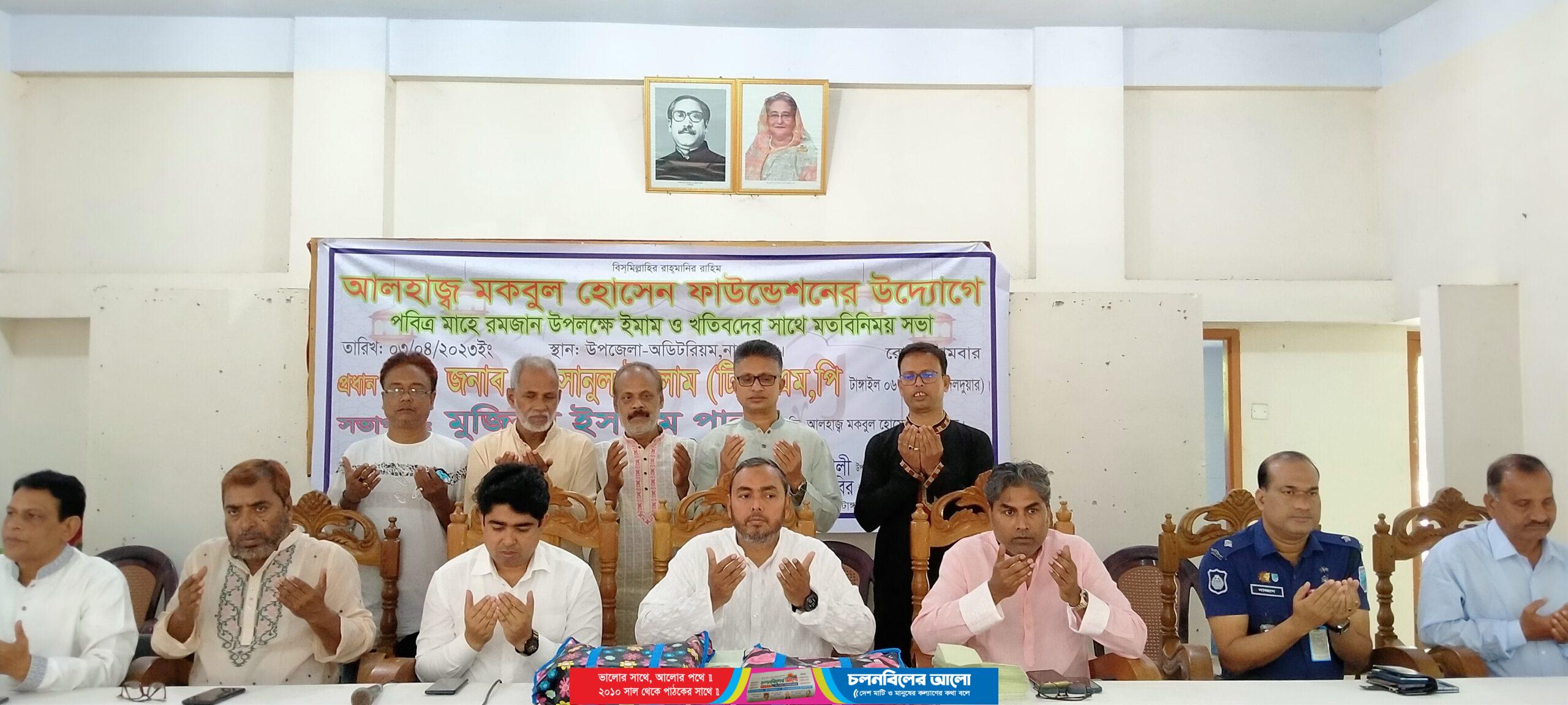 পবিত্র ঈদুল ফিতর উপলক্ষে টাঙ্গাইলের নাগরপুর উপজেলার সকল মসজিদের ইমাম ও খতিবদের সাথে মতবিনিময় সভা করেছেন টাঙ্গাইল-৬ (নাগরপুর-দেলদুয়ার) আসনের সংসদ সদস্য আহসানুল ইসলাম টিটু।