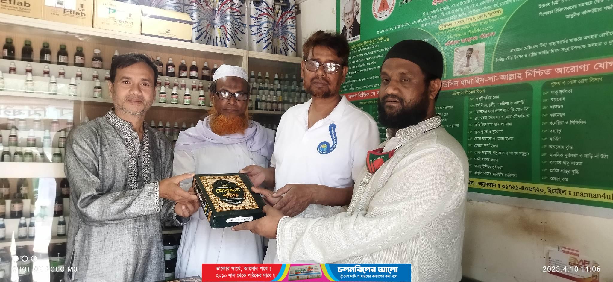 সোমবার (১০ এপ্রিল, ২০২৩ খ্রি.)সকালে নাগরপুর বাজারে আইয়ূব আলী সুপার মার্কেটে অবস্থিত প্রতিষ্ঠাতা ম্যানেজিং ডিরেক্টর ও বিশিষ্ট সমাজ সেবক  ডা.এম.এ.মান্নান এর সভাপতিত্বে পবিত্র কুরআন বিতরণের কার্যক্রম শুভ উদ্বোধন করা হয় এবং এই বিতরণ অনুষ্ঠান সারা রমজান মাসে চলমান থাকবে, ইনশাআল্লাহ।