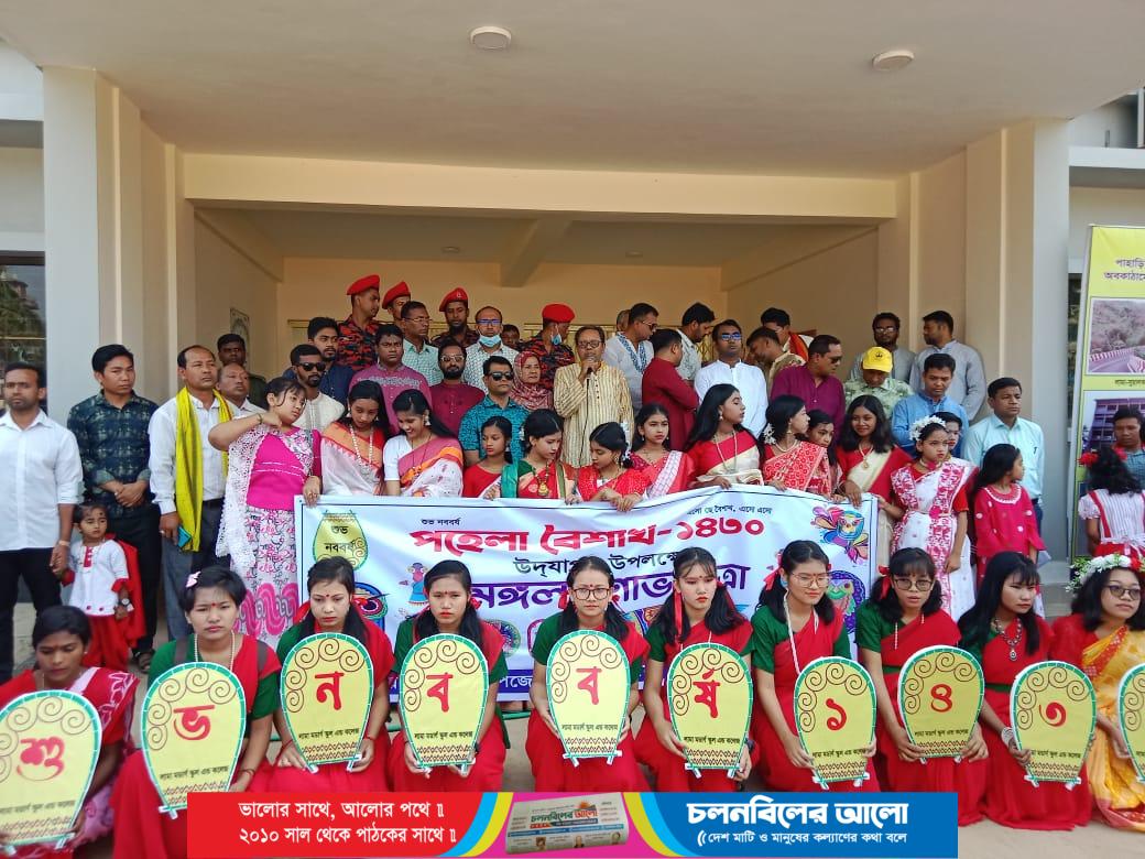 বান্দরবানের লামায় পহেলা বৈশাখ উদযাপন উপলক্ষে মঙ্গল শোভাযাত্রা ও আলোচনা সভা অনুষ্ঠিত হয়েছে। শুক্রবার (১৪ এপ্রিল,১৪৩০) সকাল ৯ টায় লামা উপজেলা প্রশাসনের আয়োজনে এসময় অংশ নেন লামা উপজেলা পরিষদের চেয়ারম্যান মোঃ মোস্তফা জামাল, নির্বাহী অফিসার মোঃ মোস্তফা জাবেদ কায়সার, সহকারী কমিশনার (ভূমি) এস.এম রাহাদুল ইসলাম,ভাইস চেয়ারম্যান মোঃ জাহেদ উদ্দীন, উপজেলা আ.লীগের সাংগঠনিক সম্পাদক প্রদীপ কান্তি দাশ কৃষি অফিসার রতন চন্দ্র বর্ণন, পরিবার পরিকল্পনা অফিসার জোবাইরা বেগম, সহকারী তথ্য অফিসার (লামা সার্কেল) খন্দকার তৌহিদ, এলজিইডি প্রকৌশলী মোঃ আবু হানিফ,বন বিভাগের লামারমূখ স্টেশন কর্মকর্তা অঞ্জন বিশ্বাস লামা সাংবাদিক ইউনিটির সভাপতি মোঃ নাজমুল হুদাসহ শিক্ষক, পুলিশ,ফায়ার সার্ভিস,সাংবাদিক, ছাত্র- ছাত্রীসহ অনেকেই।