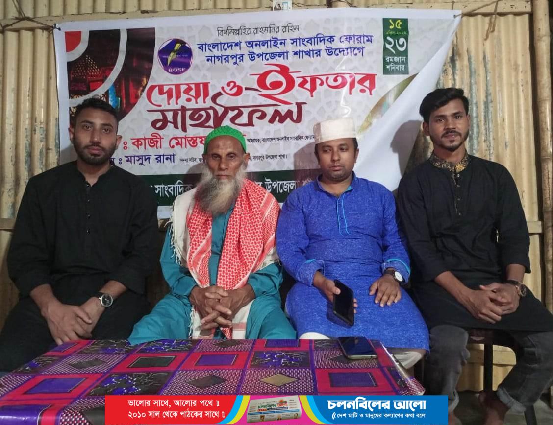 বাংলাদেশ অনলাইন সাংবাদিক ফোরাম, নাগরপুর উপজেলার শাখার উদ্যোগে শনিবার( ১৫ ই এপ্রিল)বিকালে নাগরপুর কাজী অফিস সংলগ্ন নিজস্ব কার্যালয়ে আহবায়ক কাজী মোস্তফা রুমির সভাপতিত্বে ও সদস্য সচিব মাসুদ রানার সঞ্চালনার