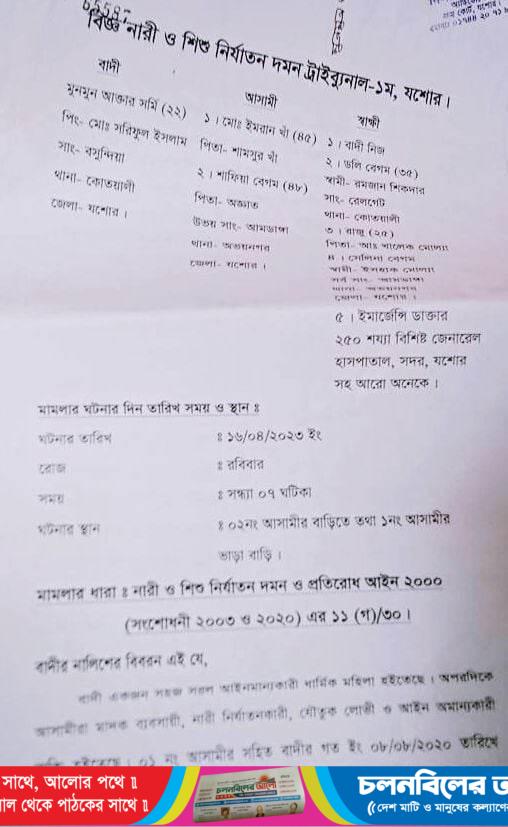 যশোরের অভয়নগরে এক আলোচিত মাদক ব্যবসায়ী কর্তৃক স্ত্রীকে যৌতুকের জন্য অমানবিক নির্যাতন করার অভিযোগে বিজ্ঞ আদালতে নারী ও শিশু দমন আইনে একটি মামলা হয়েছে। গত ১৮ এপ্রিল মঙ্গলবার স্ত্রী নিজে বাদি হয়ে বিজ্ঞ নারী ও শিশু নির্যাতন দমন ট্রাব্যুনাল -১যশোর আদালতে স্বামীসহ ২জনকে আসামি করে এমামলাটি করেছেন। মামলার আসামী হল, উপজেলার লক্ষিপুর কাপাশহাটি গ্রামের সামসুর খাঁর ছেলে ইমরান খাঁ(৪৫), পিতা অজ্ঞাত সাফিয়া বেগম(৪৮)। মামলা সূত্রে জানা গেছে, উপজেলার লক্ষিপুর কাপাশহাটি গ্রামের শামসুর খাঁর ছেলে মোঃ ইমরান খাঁ(৪৫), যশোর সদর উপজেলার বসুন্দিয়া গ্রামের মোঃ সরিফুল ইসলামের মেয়ে বাদি মুনমুন আক্তার সর্মি(২২)-এর সাথে ৮ আগস্ট ২০২০ তারিখে পারিবারিক ভাবে বিয়ে হয়। বিয়ের পর থেকে ইমরান তার কাছে যৌতুক চেয়ে নির্যাতন করতে থাকে বাদি সংসারের সুখের জন্য ৩ লাখ যৌতুকের টাকা পিতার বাড়ি থেকে এনে দেই। বাদি আর্জিতে আরো উল্লেখ করেন আসামি ইমরানের সাথে বিয়ের পর তার ঔরষে একটি কন্যা সন্তান জন্ম হয়। যার নাম আছিয়া আক্তার মিষ্টি(৫)। আসামি একজন আলোচিত চিহ্নিত মাদক ব্যবসায়ী, যে কারণে আসন্ন ঈদকে সামনে রেখে জমজমাট মাদক ব্যবসা করে আসছে। গত ঘটনার দিন ১৬ এপ্রিল আসামি ইমরান ২ লাখ টাকা যৌতুক দাবি করে, বাদি যৌতুকের টাকা এনে দিতে অস্বীকার করায় তার স্বামী ও ২নং আসামির কুপরামর্শে ভাড়া বাড়িতে তার স্বামী বাদিকে অমানবিক মারধর নির্যাতন করে ঘর থেকে বের করে দেই। আর্জিতে বাদি আরো উল্লেখ করে, বাদি যশোর জেনারেল হাসপাতালে ভর্তি হয়ে চিকিৎসা গ্রহন করে কিছু টা সুস্থ হয়ে অভয়নগর থানায় মামলা করতে গেলে পুলিশ মামলা গ্রহন না করায় বিজ্ঞ আদালতে মামলাটি করেছেন। যার মামলার ধারা নারী ও শিশু নির্যাতন দমন ও প্রতিরোধ আইন-২০০০ (সংশোধনী ২০০৩ ও ২০২০) এর- ১১(গ) ৩০। বিজ্ঞ আদালত মামলাটি গ্রহন করে সিআইডি যশোরকে তদন্ত করে প্রতিবেদন দাখিলের আদেশ দিয়েছেন। সরেজমিনে জানা গেছে,ওই এলাকার একাধিক ব্যক্তি অভিযোগ করে জানিয়েছেন। ওই ইমরান একজন চিহ্নিত মাদক ব্যবসায়ী যে কারনে সে এলাকা থেকে দীর্ঘদিন পলাতক রয়েছে। বাদিনীর বিজ্ঞ আদালতে দাখিলকৃত মামলার আর্জিতে আসামির ঠিকানা আমডাঙ্গা অভয়নগর যশোর, উল্লেখ করলেও প্রকৃতপক্ষে আসামির ঠিকানা এই প্রতিবেদক জানতে পারেন,উপজেলার লক্ষিপুর কাপাশহাটি অভয়নগর যশোর। যে কারণে সঠিক ঠিকানা উল্লেখ করা হল।
