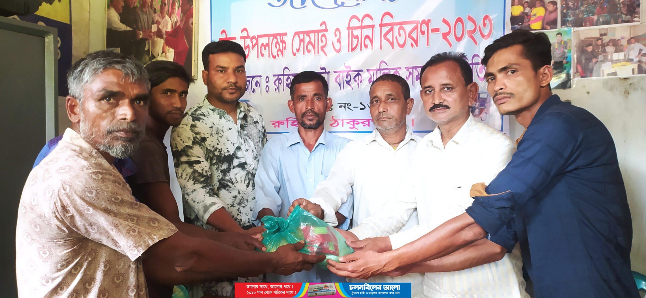 ঠাকুরগাঁওয়ের রুহিয়া অটোবাইক মালিক সমবায় সমিতি লিঃ রেজি নং-১৬ এর উদ্যোগে ঈদ সামগ্রী বিতরণ করা হয়েছে।