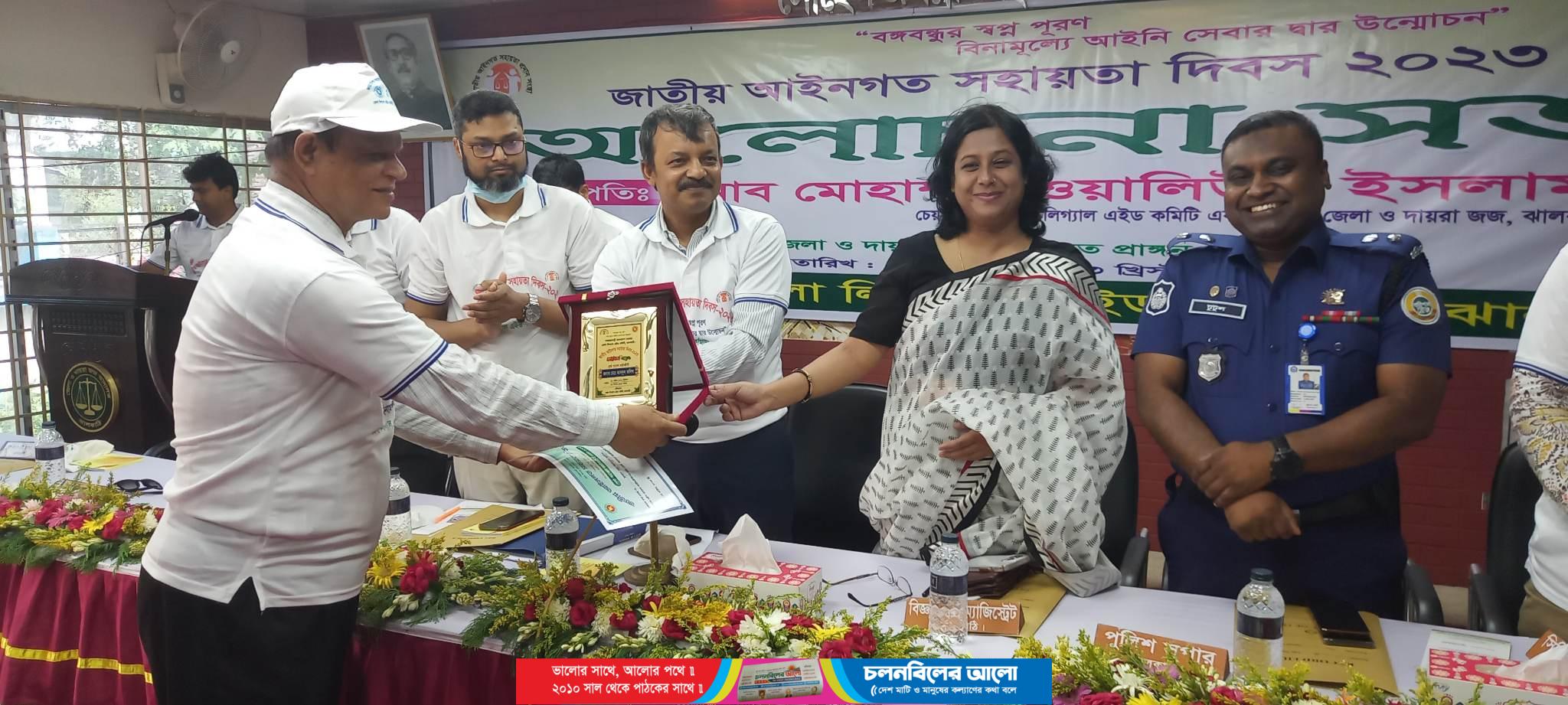 ঝালকাঠিতে জাতীয় আইনগত সহায়তা ২০২৩ উপলক্ষে আলোচনা সভা অনুষ্ঠিত হয়েছে। ঝালকাঠি জেলা জজ আদালতের শহীদ সোহেল- জগন্নাথ স্মৃতি মঞ্চে শুক্রবার (২৮ এপ্রিল) সকাল ৯টায় র্যালি ও সাড়ে ৯টায় আলোচনা সভা অনুষ্ঠিত হয়। জেলা ও দায়রা জজ এবং জেলা লিগ্যাল এইড কমিটির চেয়ারম্যান মোহাম্মদ ওয়ালিউল ইসলামের সভাপতিত্বে সভায় বক্তব্য রাখেন জেলা প্রশাসক ফারাহ্ গুল নিঝুম, পুলিশ সুপার মোহাম্মদ আফরুজুল হক টুটুল, জেলা ও দায়রা জজ নারী ও শিশু নির্যাতন দমন ট্রাইব্যুনালের বিজ্ঞ বিচারক এমএ হামিদ, চীফ জুডিশিয়াল ম্যাজিস্ট্রেট মো: পারভেজ শাহরিয়ার, জেলা লিগ্যাল এইড অফিসার মো: আমিরুল ইসলাম, সিভিল সার্জন ডা: মো: জহিরুল ইসলাম, বিজ্ঞ পি, পি জেলা আইনজীবি সমিতির সভাপতি আ: মান্নান রসুল, এড. মাহবুবুর রহমান তালুকদার, শ্রেষ্ঠ বিজ্ঞ প্যানেল আইনজীবি মো: আ: জলিল, লিগ্যাল এইড সুবিধাভোগী আ: মালেক, বোরহান উদ্দিন খান ও রোকেয়া বেগম প্রমুখ। পবিত্র কোরআন তেলোয়াত ও গীতা পাঠের মাধ্যমে সভার কর্মসূচী শুরু করা হয়। সভায় এডভোকেট মো: আ: জলিলকে এ বছর সেরা প্যানেল আইনজীবি ঘোষনা করা হয় এবং সেরা প্যানেল আইনজীবি পুরস্কার ও সনদ প্রদান করা হয়।