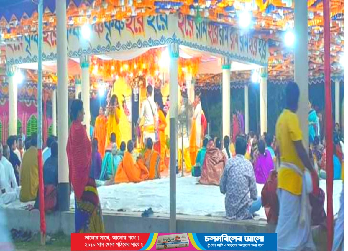 ১৬ তম বর্ষ উপলক্ষে ও জীবের মুক্তি ও বিশ্বশান্তিকল্পে দিনাজপুরের বীরগঞ্জে ২৪ প্রহরব্যাপী অখন্ড শ্রী শ্রী হরিনাম মহাযজ্ঞানুষ্ঠান ও রাধা গোবিন্দের অষ্টকালীন নীলা কীর্তন। পৌরশহরের ৭নং ওয়ার্ডের বীরগঞ্জ কেন্দ্রীয় মহানাম যজ্ঞানুষ্ঠান কমিটির উদ্যোগে সোমবার (১মে ২০২৩) শ্রীমদভগবদগীতা পাঠ, শুভ ও মঙ্গলঘট স্থাপন ও কীর্তন সহকারে অধিবাস মাধ্যমে শুরু হয় ধর্মীয় অনুষ্ঠান। (২.৩ ও ৪ মে ২০২৩,) মঙ্গল, বুধ ও বৃহস্পতিবার অরুনোদয়কাল হইতে ২৪ প্রহরব্যাপী মহানাম সংকীর্ত্তন। এদিকে উৎসব চলাকালে প্রতিদিনই অসংখ্য ভক্তের সমাগম ঘটে। এছাড়া উৎসব উপলক্ষে এখানে একটি ছোট মেলার আয়োজন এবং ইলেকট্রনিক ও প্রিন্টা মিডিয়াদের জন্য রয়েছে অফিস কর্ণার। উল্লেখ যে, উক্ত অনুষ্ঠানে কীর্তন পরিবেশন করছেন কুমিল্লা থেকে আগত শ্রীশ্রী বেদবাণী সম্প্রদায়, জয় বিমল কৃষ্ণ সম্প্রদায় ( নেত্রকোণা), শ্রীশ্রী বীণাপানি সম্প্রদায় (গোপালগঞ্জ) দিপু শ্রী সম্প্রদায়( কুমিল্লা), গৌর নিত্যান্দ সম্প্রদায় পঞ্চগড় ও শ্রী কৃষ্ণ সুদামা সম্প্রদায় (পুরুষ) স্বাগতিক দল। আগামী শুক্রবার অরুণোদয় কাল হইতে অষ্টকালীন লীলাকীত’ন পরিবেশন করবেন শ্রীমতি কৃষ্ণা পাল – (যশোর) , অঞ্জলি সরকার(সাতক্ষীরা),তন্ময় দাস -(ফরিদপুর)। ( ৫ মে ২০২৩) শুক্রবার শ্রীশ্রী রাধাগোবিন্দের অষ্টকালীন লীলা কীর্তন এর এর মাধ্যমে সমাপ্তি হবে এ অনুষ্ঠানের ।