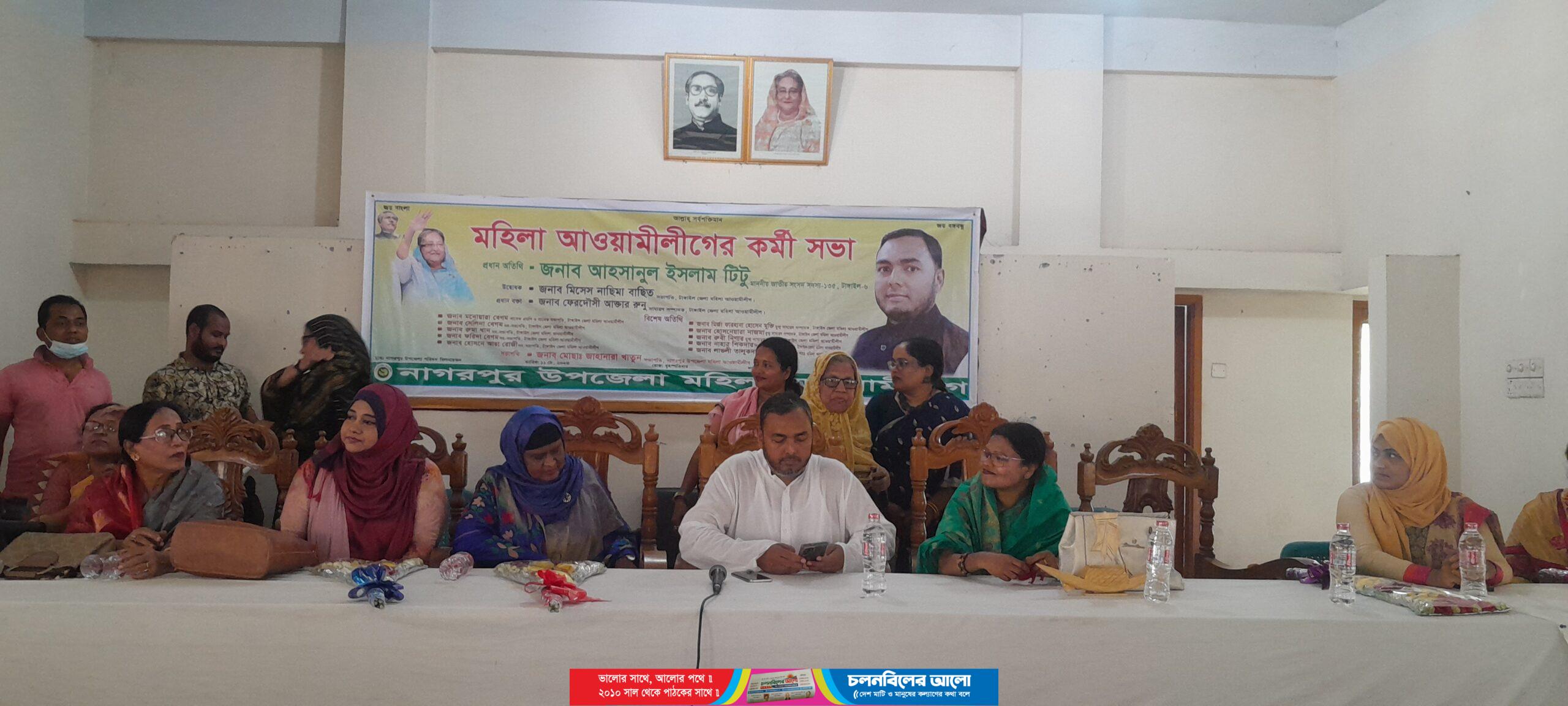 বৃহস্পতিবার সকালে উপজেলা পরিষদ হল রুমে নাগরপুর উপজেলা মহিলা আওয়ামীলীগের উদ্যোগে এ কর্মী সভার আয়োজন করা হয়। উপজেলা মহিলা আওয়ামীলীগের সভাপতি মোছা. জাহানারা খাতুনের সভাপতিত্বে ও কামরুনাহার লাইলীর পরিচালনায় কর্মী সভায় প্রধান অতিথি হিসেবে উপস্থিত ছিলেন, টাঙ্গাইল-৬ (নাগরপুর-দেলদুয়ার) আসনের সংসদ সদস্য আহসানুল ইসলাম টিটু। কর্মী সভায় আরো উপস্থিত ছিলেন,  টাঙ্গাইল জেলা মহিলা আওয়ামীলীগের সাবেক সভাপতি ও সাবেক এমপি মনোয়ারা বেগম, নাগরপুর উপজেলা আওয়ামীলীগের সহ-সভাপতি ও সাবেক চেয়ারম্যান মো. আনিসুর রহমান আনিস, নাগরপুর উপজেলা পরিষদের মহিলা ভাইস চেয়ারম্যান ছামিনা বেগম শিপ্রা, টাঙ্গাইল জেলা মহিলা আওয়ামীলীগের সহ-সভাপতি সেলিনা বেগম, রুমা খান, ফরিদা বেগম, হোসনে আরা রোজী, টাঙ্গাইল জেলা মহিলা আওয়ামীলীগের যুগ্ন সাধারন সম্পাদক মির্জা ফারহানা হোসেন মুক্তি, হোসনেয়ারা নাজমা, রুবী নিগার, শিল্প ও বানিজ্য বিষয়ক সম্পাদক নাহার শিকদার ও শহর মহিলা আওয়ামীলীগের সাধারন সম্পাদক লাভলী তালুকদার প্রমুখ।