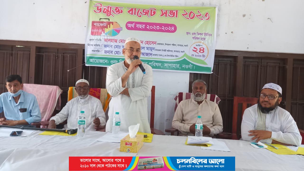 নওগাঁর সাপাহার উপজেলার ৩ নং তিলনা ইউনিয়ন পরিষদের ২০২৩-২০২৪ অর্থ বছরের উন্মুক্ত বাজেট ঘোষণা করা হয়েছে।