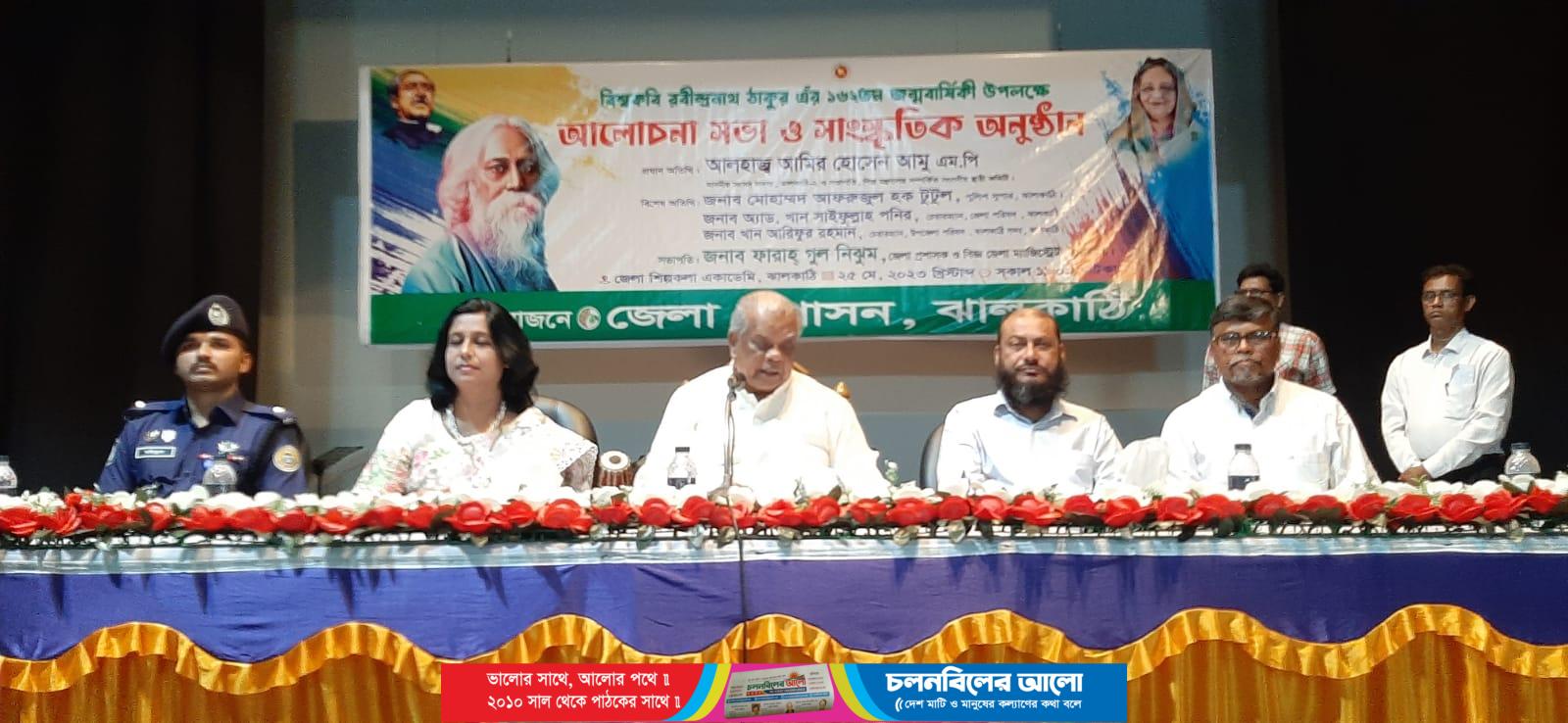 বৃহস্পতিবার দুপুরে জেলা শিল্পকলা একাডেমির হল রুমে এ অনুষ্ঠান হয়। জেলা প্রশাসক ফারাহ্ গুল নিঝুমের সভাপতিত্বে অনুষ্ঠানে প্রধান অতিথি ছিলেন ১৪ দলের সমন্বয়ক ও মুখপাত্র এবং ঝালকাঠি-২ আসনের সংসদ সদস্য আমির হোসেন আমু। অনুষ্ঠানে স্থানীয় শিল্পিরা সংগীত, কবিতা ও নৃত্য পরিবেশন করেন। বাংলাদেশের মহান মুক্তিযুদ্ধ ও জাতীয় জীবনে কবির অবদান নিয়ে আলোচনা করেন প্রধান অতিথি আওয়ামী লীগের প্রবীণ নেতা আমির হোসেন আমু। অনুষ্ঠানে বিশেষ অতিথি হিসেবে ঊপস্থিত ছিলেন জেলা পরিষদ চেয়ারম্যান ও জেলা আওয়ামী লীগের সাধারণ সম্পাদক অ্যাডভোকেট খান সাইফুল্লাহ পনির, অতিরিক্ত জেলা প্রশাসক লতিফা জান্নাতী, উপজেলা নির্বাহী অফিসার সাবেকুন নাহার, সহকারী কমিশনার ও বিজ্ঞ এক্সিকিউটিভ ম্যাজিষ্ট্রেট (নেজারত) মিলন চাকমা, অতিরিক্ত পুলিশ সুপার (সদর সার্কেল) মো: মহিতুল ইসলাম ও সদর উপজেলা পরিষদের চেয়ারম্যান খান আরিফুর রহমান ও আওয়ামীলীগ, ছাত্রলীগ ও যুবলীগের নেতৃবৃন্দ উপস্থিত ছিলেন। পরে প্রধান অতিথি বিভিন্ন প্রতিযোগিতায় বিজয়ীদের মাঝে পুরস্কার বিতরণ করেন।