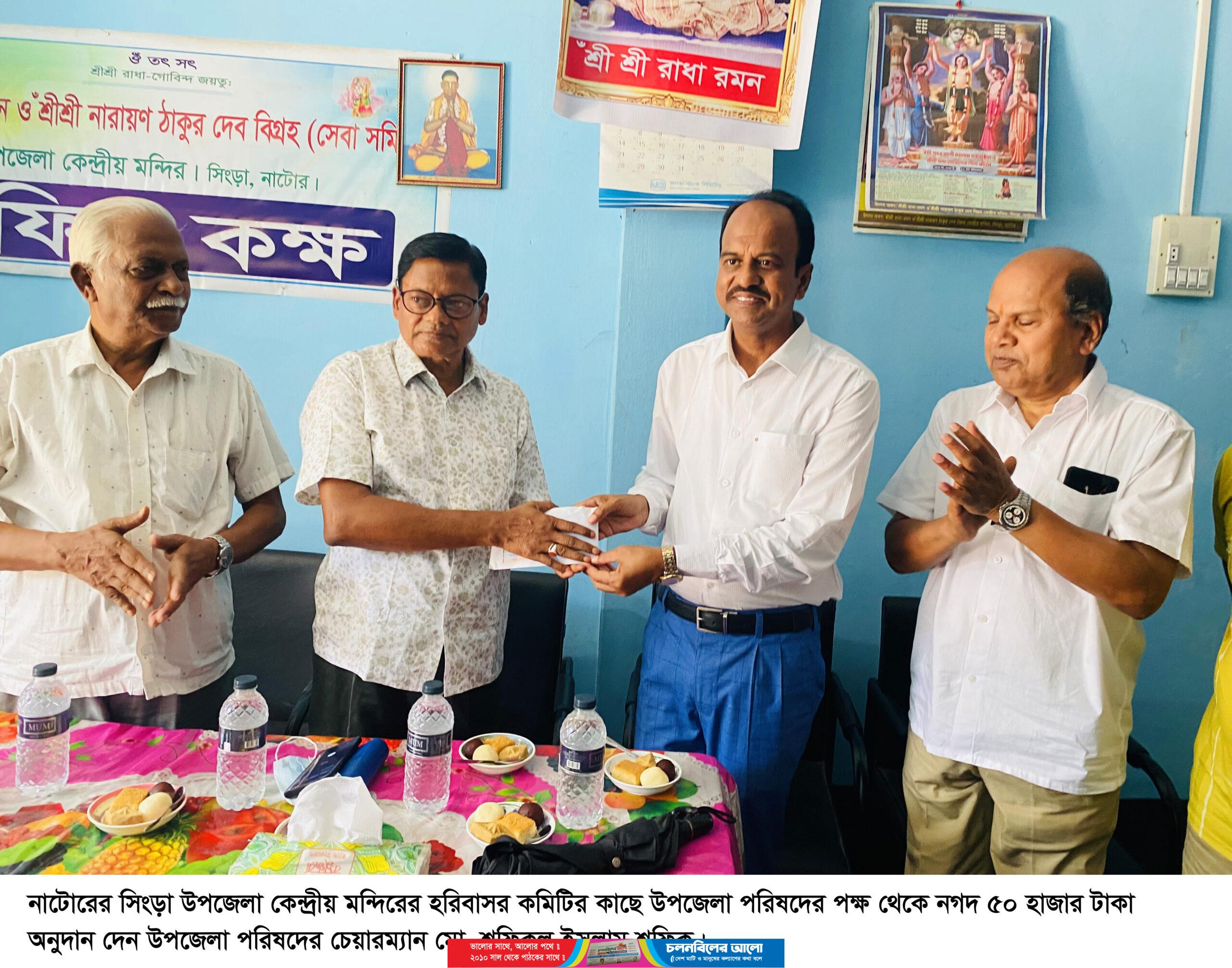 সিংড়ায় মন্দিরে অনুদান দিলেন উপজেলা চেয়ারম্যান