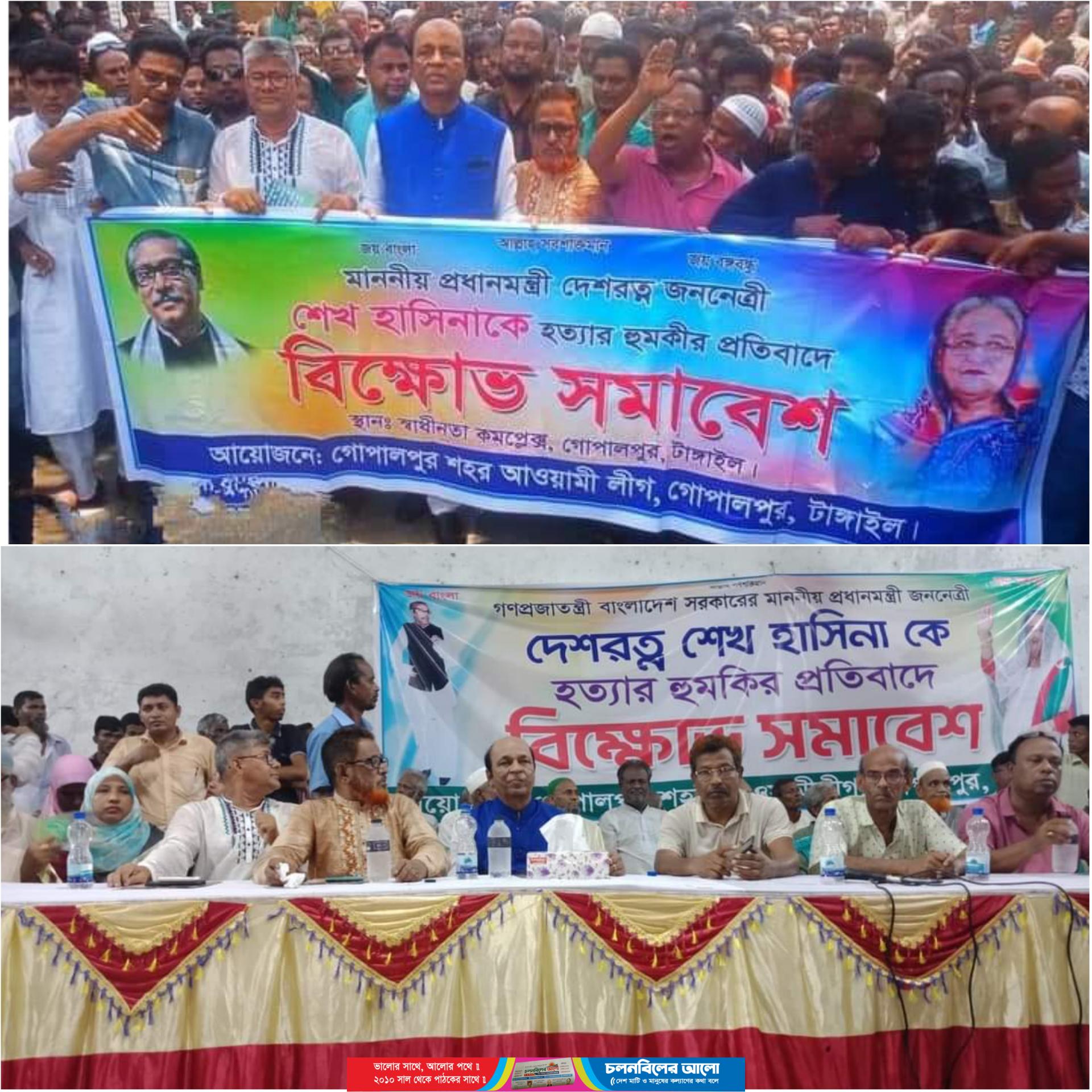 প্রধানমন্ত্রী শেখ হাসিনাকে হত্যার হুমকির প্রতিবাদে টাঙ্গাইলের গোপালপুরে বিক্ষোভ মিছিল অনুষ্ঠিত হয়।