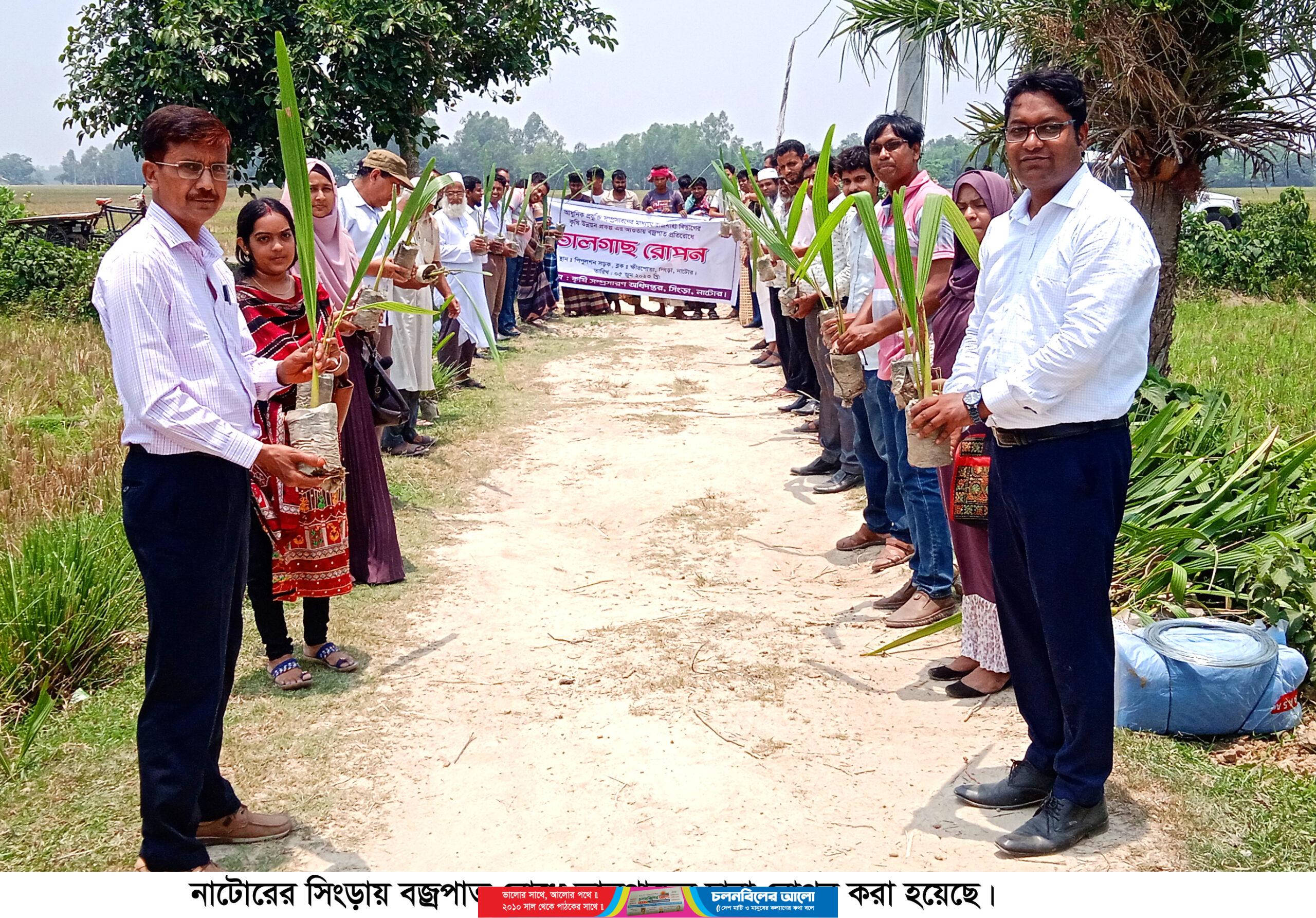 নাটোরের সিংড়ায় বজ্রপাত রোধে তালগাছের চারা রোপন করা হয়েছে। আধুনিক প্রযুক্তি সম্প্রসারণের মাধ্যমে রাজশাহী বিভাগের কৃষি উন্নয়ন প্রকল্প এর আওতায় বজ্রপাত প্রতিরোধে তালগাছ রোপন করা হয়েছে।
