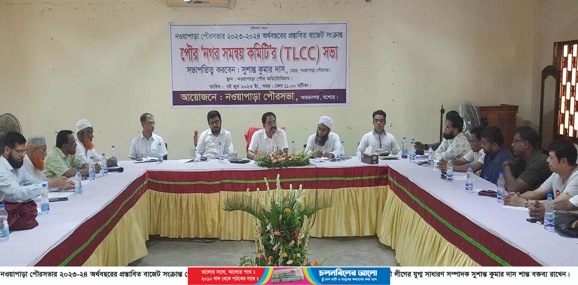 অবকাঠামো নির্মাণ ও ব্যাপক উন্নয়ন পরিকল্পনার সমন্বয়ে ২০২৩-২০২৪ অর্থবছরে ১৪৩ কোটি ১৫ লাখ ৯০ হাজার টাকার প্রস্তাবিত বাজেট করেছে নওয়াপাড়া পৌরসভা। প্রস্তাবিত বাজেট সংক্রান্ত বিষয় নিয়ে বুধবার (৭ জুন) সকালে পৌর অডিটোরিয়ামে ‘নগর সমন্বয় কমিটি’র (টিএলসিসি) এক সভা অনুষ্ঠিত হয়। পৌর মেয়র ও অভয়নগর উপজেলা আওয়ামী লীগের যুগ্ম সাধারণ সম্পাদক সুশান্ত কুমার দাস শান্তর সভাপতিত্বে সভায় বক্তব্য রাখেন, পৌরসভার প্রধান নির্বাহী কর্মকর্তা (অঃদাঃ) ও উপজেলা সহকারী কমিশনার (ভূমি) থান্দার কামরুজ্জামান, নির্বাহী প্রকৌশলী অসীম কুমার সোম, নির্বাহী কর্মকর্তা সাইফুল ইসলাম, হিসাবরক্ষণ কর্মকর্তা মীর উজ্জ্বল। প্রস্তাবিত বাজেটের বিষয়ে মতামত প্রকাশ করেন, নওয়াপাড়া পৌর আওয়ামী লীগের সভাপতি আলহাজ্ব রফিকুল ইসলাম সরদার, নওয়াপাড়া মডেল কলেজের অধ্যক্ষ মহিদুল ইসলাম খান টোকন, নওয়াপাড়া প্রেসক্লাবের সভাপতি নজরুল ইসলাম মল্লিক, উপজেলা ক্রীড়া সংস্থার সাধারণ সম্পাদক মঈনুর জহুর মুকুল, বিভা’র নির্বাহী পরিচালক সুকুমার ঘোষ, প্রেসক্লাবের যুগ্ম সাধারণ সম্পাদক এস জেড মাসুদ তাজ প্রমুখ। এসময় উপস্থিত ছিলেন, পৌর কাউন্সিলর তানভীর হোসেন তানু, মোস্তফা কামাল, শেখ আব্দুস সালাম, জাহাঙ্গীর হোসেন বিশ্বাস, রেজাউল ইসলাম রেজা ফারাজী, বিপুল শেখ, সংরক্ষিত আসনের কাউন্সিলর রোকেয়া খাতুন, শিরিনা বেগম, রাশেদা খানম লিপি, আওয়ামী লীগ নেতা ইব্রাহিম হোসেন বিশ্বাস, মোল্যা আনোয়ার হোসেন, গোলাম আজম মিঠু, আনিসুর রহমান মিন্টু, ইলিয়াস সরদার, বাচ্চু খান, সফি কামালসহ পৌর ‘নগর সমন্বয় কমিটি’র অন্যান্য নেতৃবৃন্দ।