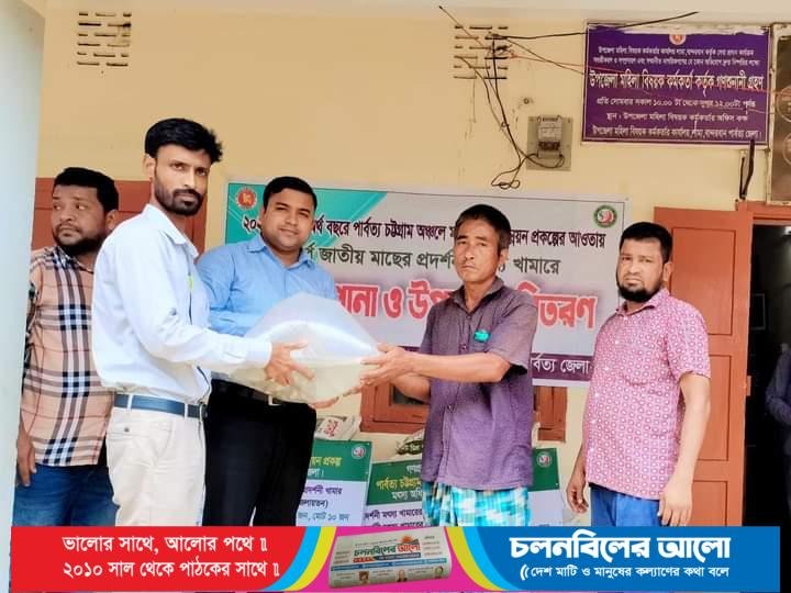 লামায় মাছ চাষ প্রদর্শনী ও পুকুরে পোনা অবমুক্তকরণ করা হয়েছে। উপজেলা মৎস্য অফিস কর্তৃক পার্বত্য চট্টগ্রাম অঞ্চলে মৎস্যসম্পদ উন্নয়ন প্রকল্পের অর্থায়নে মৎস্য প্রদর্শনী পুকুরে উপকরণ, মাছের খাদ্য, মাছের পোনা বিতরণ ও প্রদর্শনী পুকুরে পোনা  অবমুক্ত করা হয়। বুধবার (১৪ জুন) বেলা ১১টায় লামা উপজেলা পরিষদ প্রাঙ্গনে গজালিয় ২০২২-২৩ অর্থ বছরের  মাছের পোনা বিতরণ ও চাষ প্রদর্শনী করা হয়।
