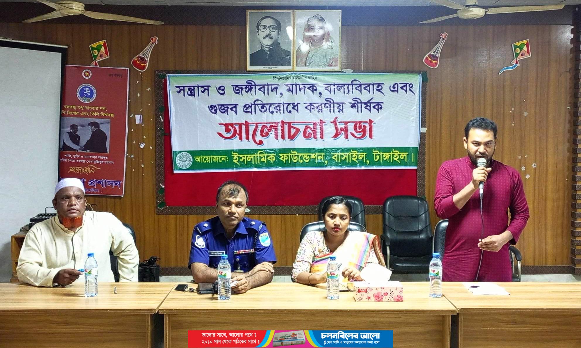 টাঙ্গাইলে বাসাইলে ইসলামিক ফাউণ্ডেশন এর উদ্যোগে বাসাইল উপজেলা হল রুমে  সন্ত্রাস ও জঙ্গীবাদ, মাদক, বাল্যবিবাহ এবং গুজব প্রতিরোধ করণীয় শীর্ষক আলোচনা সভার আয়োজন করা হয়েছে,