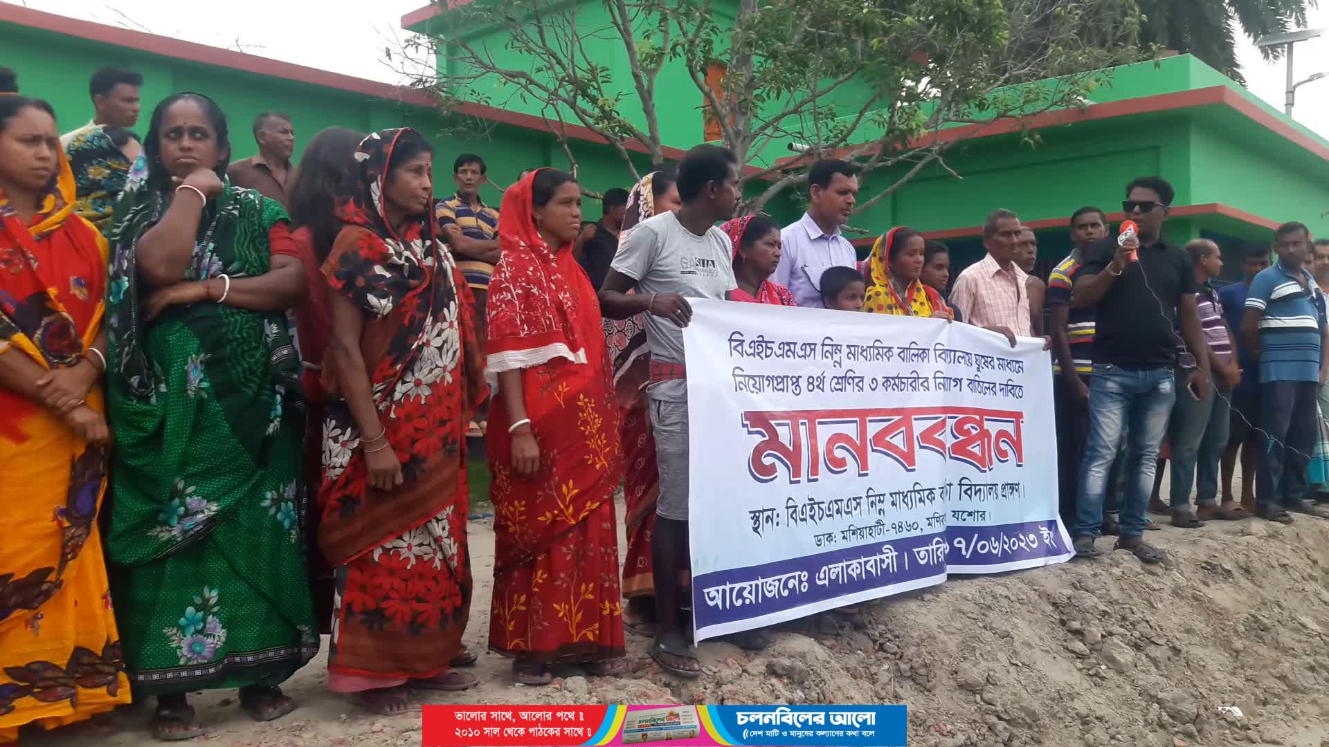 মনিরামপুরে স্কুলে দুর্নীতির মাধ্যমে নিয়োগ দেয়া ব্যক্তিদের নিয়োগ বাতিলের দাবিতে এলাকাবাসীর মানববন্ধন পালন
