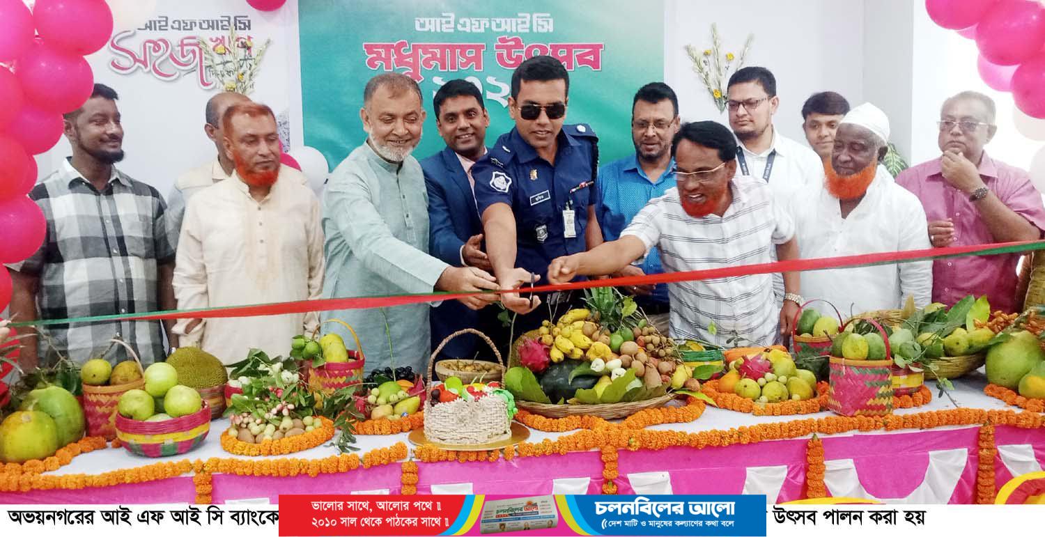 যশোরের অভয়নগরের নওয়াপাড়ায় আই এফ আই সি ব্যাংকে মধুমাস ফল উৎসব পালন করা হয়েছে। আই এফ আই সি ব্যাংক নওয়াপাড়া শাখার আয়োজনে গতকাল মঙ্গলবার (২০ জুন) সকালে নওয়াপাড়া বাজারের এল বি টাওয়ারে শাখায় লোকজ সংস্কৃতির আলোকে মধুমাস ফল উৎসব পালন করা হয়। এতে প্রধান অতিথি হিসাবে ফিতা কেটে ফল উৎসবের উদ্বোধন করেন, অতিরিক্ত পুলিশ সুপার “খ” সার্কেল মুকিত সরকার। প্রধান অতিথি তার বক্তব্যে বলেন, দেশে এ ধরনের মধুমাসে ফল উৎসবের আয়োজন খুবই প্রয়োজন। বিশেষ অতিথি ছিলেন, নওয়াপাড়া সরকারি মহাবিদ্যালয়ের অধ্যক্ষ রবিউল হাসান, নওয়াপাড়া প্রেসক্লাবের সভাপতি নজরুল ইসলাম মল্লিক, সাধারণ সম্পাদক মোজাফফর আহমেদ, বিশিষ্ট ব্যাবসায়ী নাজমুল হক খোকন, রোমান জুটমিলের ম্যানেজিং ডাইরেক্টর মোহাম্মদ আলী, পল্লী বিদ্যুৎ ডিজিএম আব্দুল্লাহ আল মামুন। ব্যাংকের ম্যানেজার মোহাম্মাদ মিজানুর রহমানের সার্বিক সহযোগিতায় উৎসবে আমন্ত্রীত অতিথি হিসেবে উপস্থিত ছিলেন, অধ্যক্ষ ফাইসাল রশিদ, আব্দুল লতিফ, খায়রুল বাশার, ইকবাল হোসেন। ব্যাংক কর্মকর্তা মো. রবিউল ইসলাম, মো. মেজবাহুল কবীর তপু, শান্তা ইসলাম, কমলেশ বিশ্বাস, সাংবাদিক এম এম অলাউদ্দিন, রবিউল ইসলাম, জাকির হোসেন হৃদয়, জসীমউদ্দিন বাচ্চু, ডি আর আনিস, প্রমুখ।