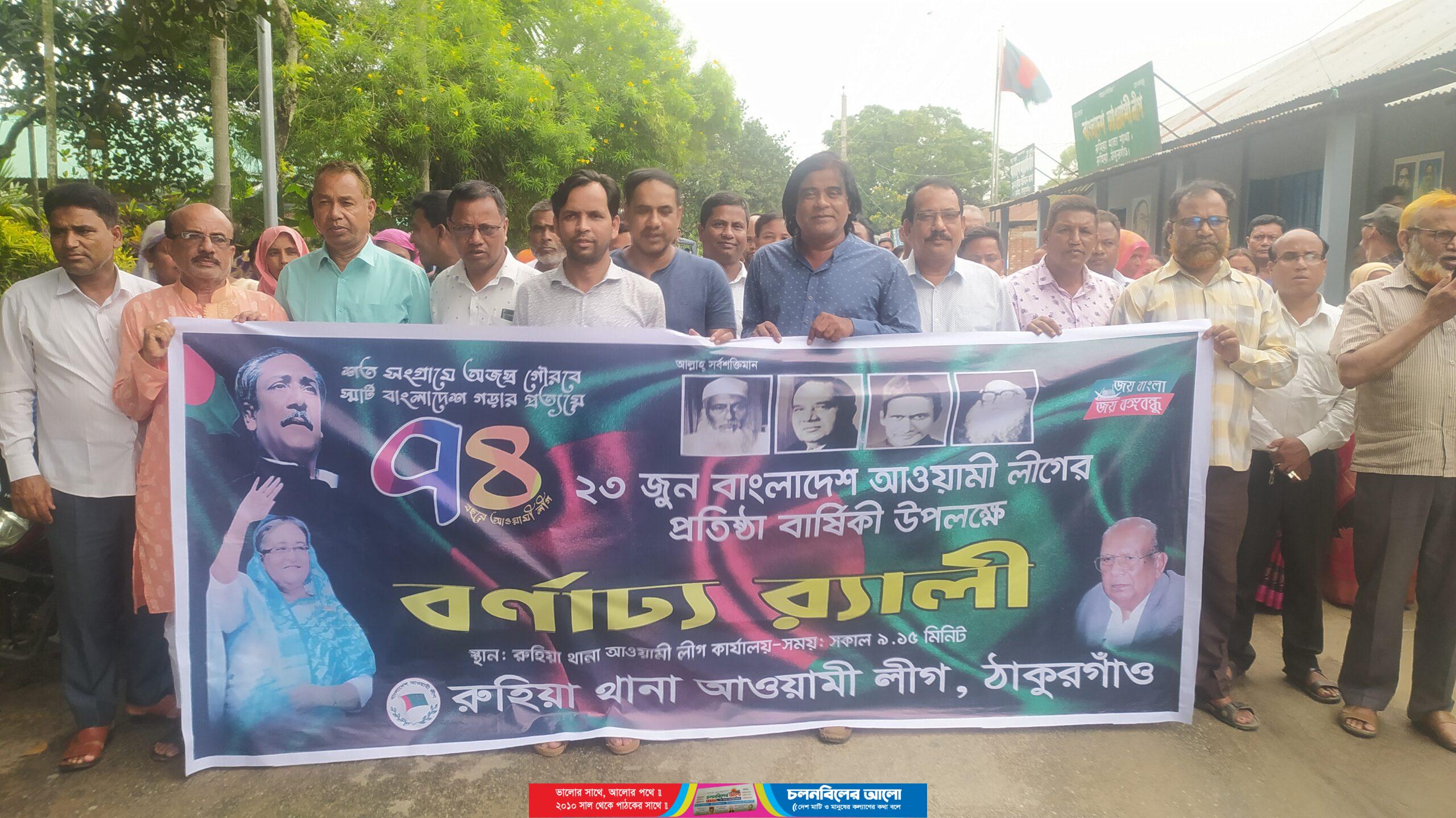 ঠাকুরগাঁওয়ের রুহিয়ায় বাংলাদেশ আওয়ামী লীগের ৭৪তম প্রতিষ্ঠাবার্ষিকী পালন করেছে রুহিয়া থানা আওয়ামী লীগ এবং থানার বিভিন্ন ইউনিয়ন আওয়ামী লীগ সহ সহযোগী ও অঙ্গসংগঠনগুলো ।