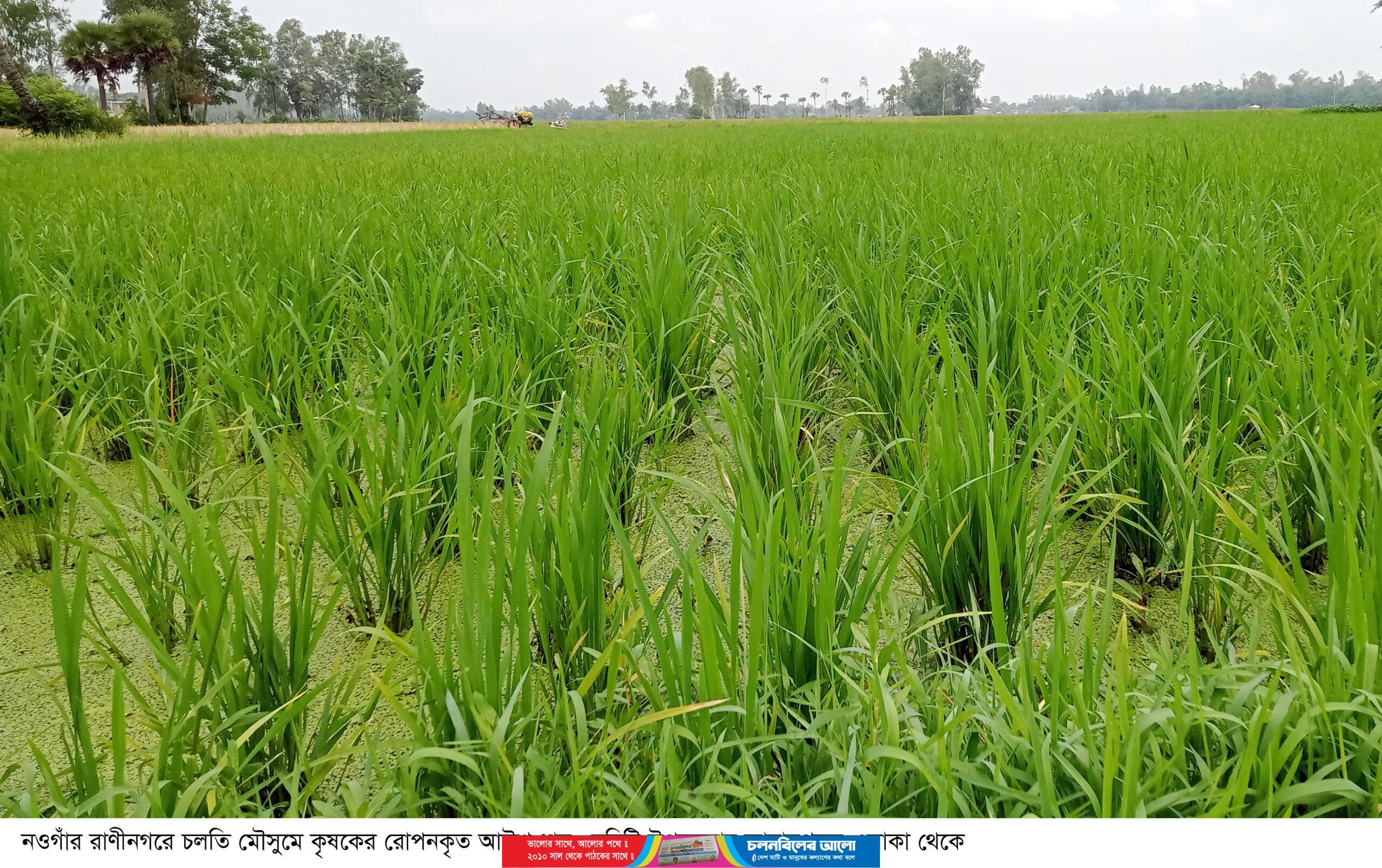 রাণীনগরে সম্ভাব্য লক্ষমাত্রার ১৫শতাংশ জমিতে আউশ ধান রোপণ