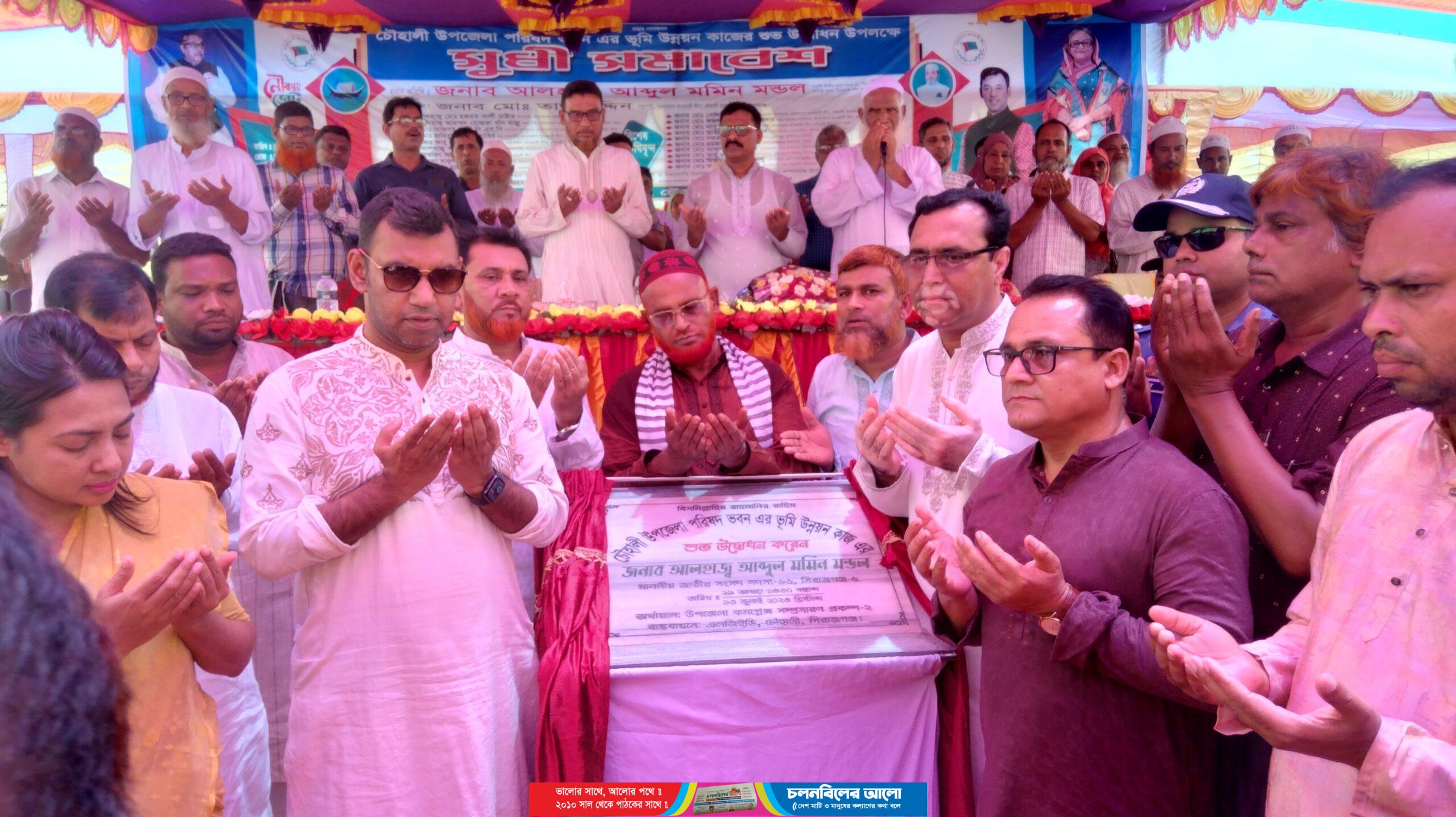 সিরাজগঞ্জের চৌহালী উপজেলা পরিষদ ভবনের ভূমি উন্নয়ন কাজ এর উদ্বোধন করা হয়েছে। বৃহস্পতিবার (১৩ জুলাই) সকালে উপজেলা পরিষদ কমপ্লেক্সের অধিগ্রহণকৃত নতুন জায়গায় (কোদালিয়া গ্রাম) মাটি ভরাট কাজের উদ্বোধন করেন স্থানীয় সংসদ সদস্য আলহাজ্ব আব্দুল মমিন মন্ডল।