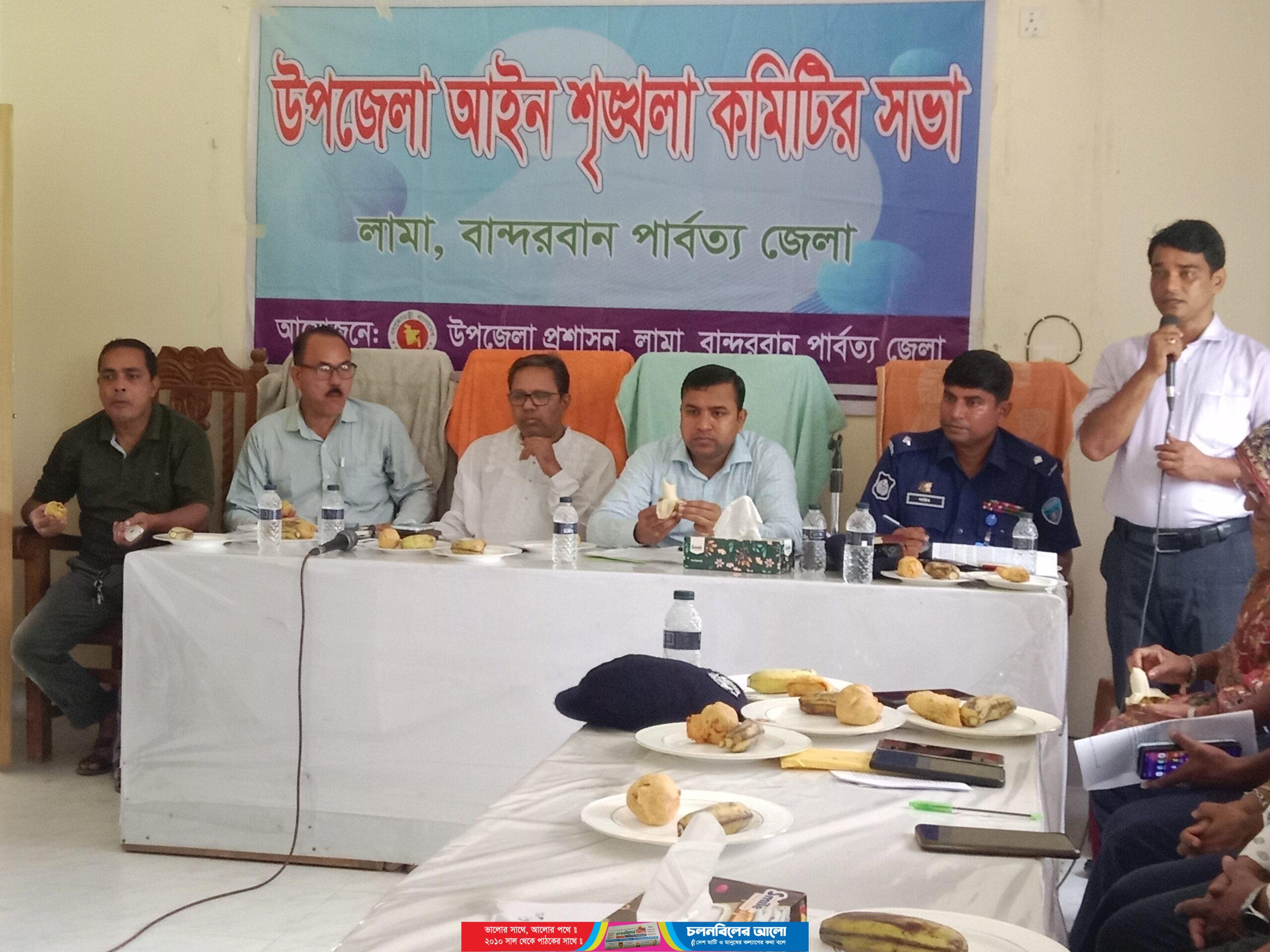 লামায় আইন-শৃঙ্খলা ও মাসিক সমন্বয় সভা অনুষ্ঠিত হয়েছে। বৃহস্পতিবার (২০জুলাই) সকাল ১০টায় লামা উপজেলা পরিষদ হলরুমে প্রশাসন ও পরিষদের আয়োজনে এসময় প্রধান অতিথি হিসেবে উপস্থিত ছিলেন লামা উপজেলা পরিষদের চেয়ারম্যান মোঃ মোস্তফা জামাল।