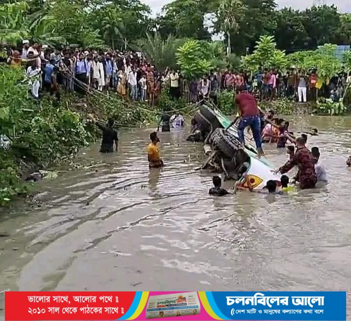 সদর থানার ওসি মো:নাসির উদ্দীন সরকার জানান, যাত্রীবাহী বাসটি উল্টে পুকুরে পড়ে গেলে এখন পর্যন্ত মৃত ১৭জনকে উদ্ধার করা হয়েছে। আহত আরো কয়েকজনকে হাসপাতালে নেয়া হয়েছে। তাদের মধ্যেও মুমুর্ষ কয়েকজনকে দেখা গেছে। গাড়ীর ভিতরে কি পরিমাণ লোক আটকে আছে তা ধারণা করা যাচ্ছে না। গাড়িটি উদ্ধার সম্ভব হলে তখন বিস্তারিত বলা যাবে।